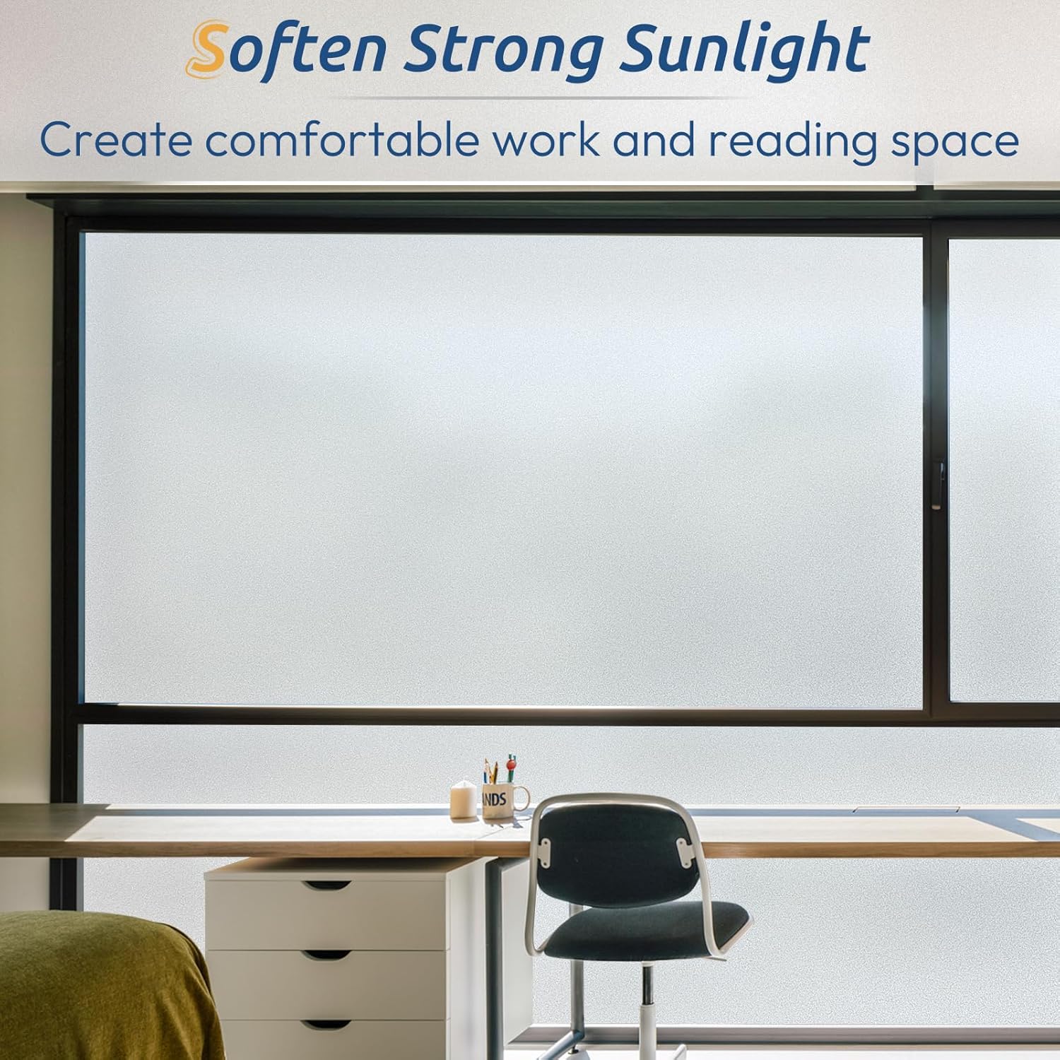 - Static Cling& No More Glue Hassle: Say goodbye to sticky glue - rabbitgoo frosted glass window film is super static cling and works great on flat, clean, and smooth glass surfaces, leaving no residue after removal and suitable for multiple use according to your need. The static cling window film can be easily changed out for seasons, holidays and special occasions