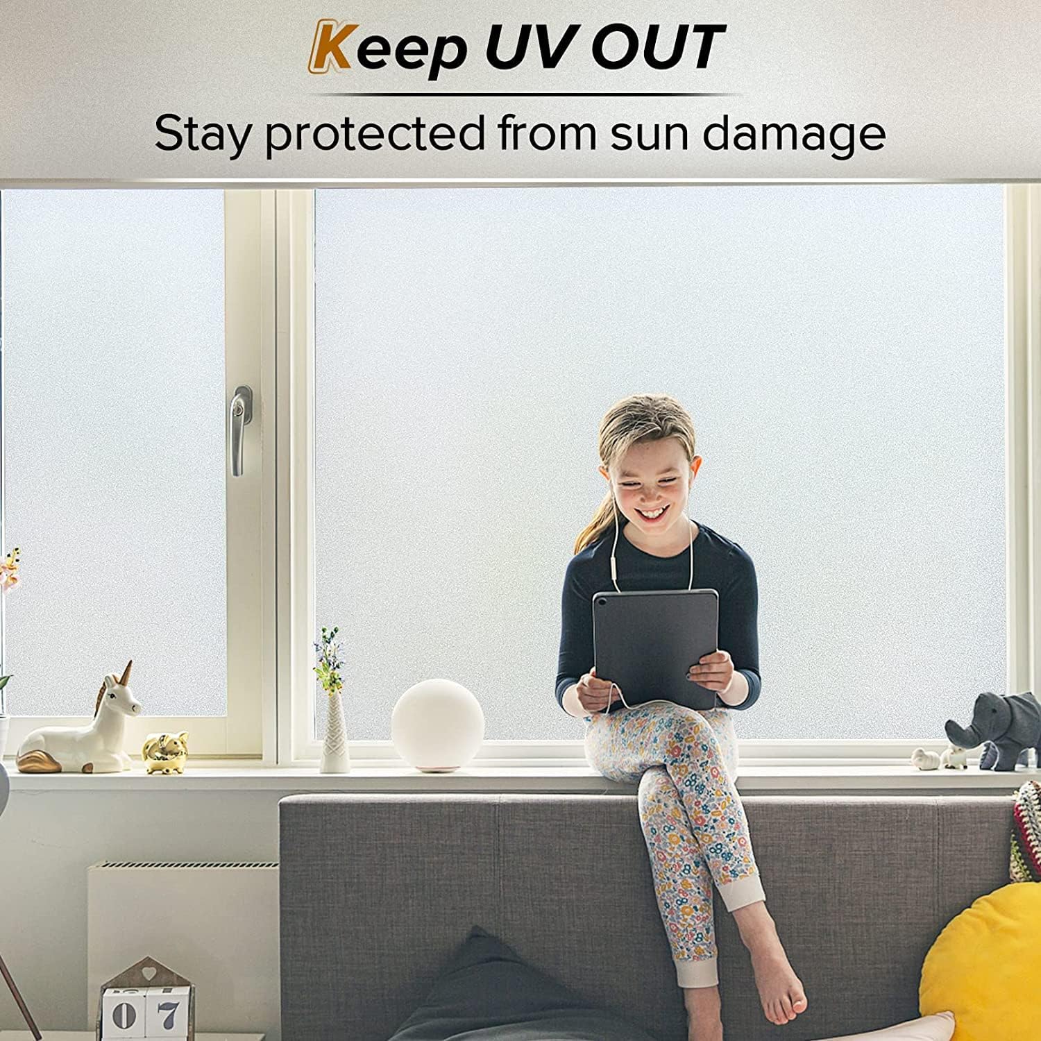 - UV Blocking& Glare Control: The privacy window film helps resolve many troublesome problems in the hot summer days - it filters strong dazzling sunlight glares, blocks out 84% UVA rays and 99% UVB rays, and protects your skin from harmful radiation exposure as well as reduce the fading and aging of furniture, making your home comfortable to live in