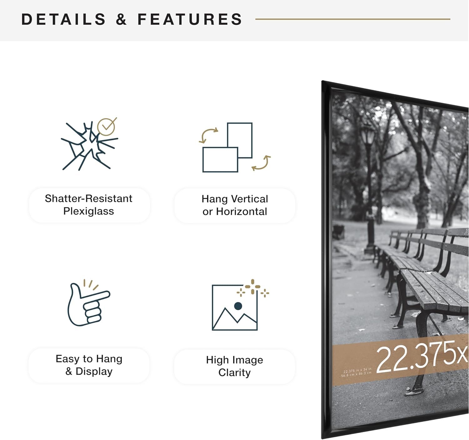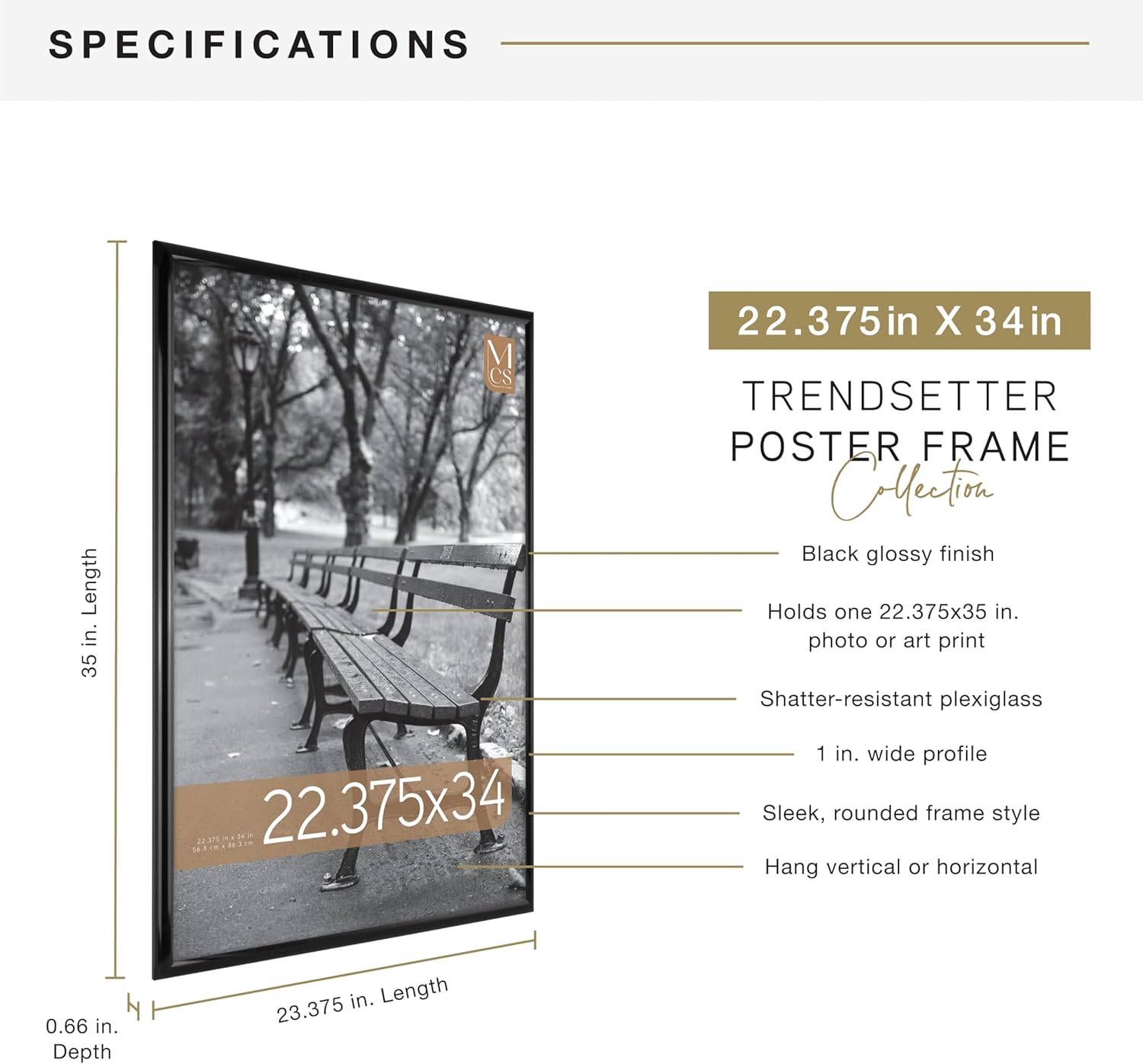 MCS Trendsetter 22.75x34 Poster Frame Black High-Gloss, Vertical & Horizontal Wall Hanging Large Picture Frame for Photos, Posters & Art Prints (1-Pack)