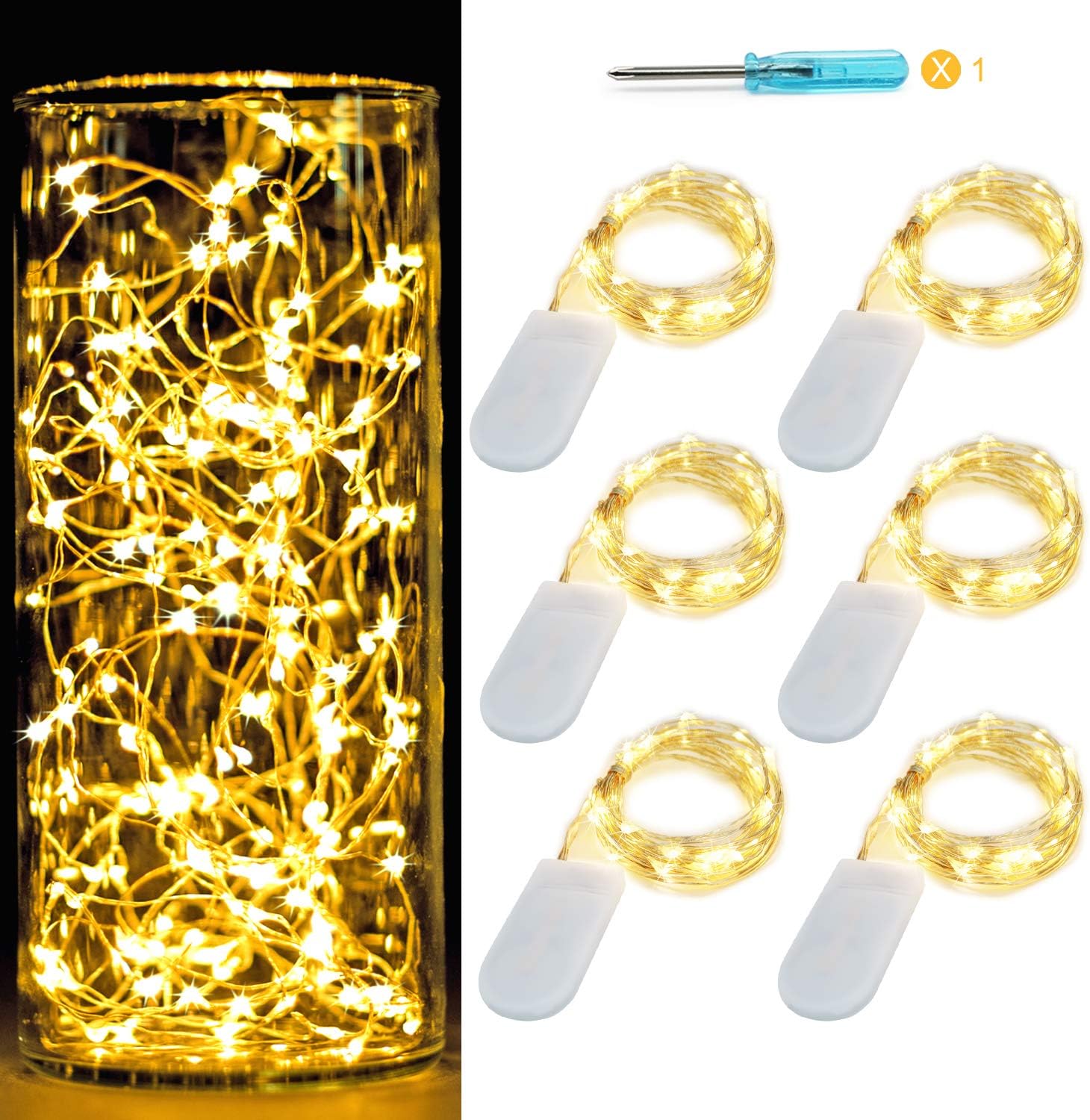 OakHaomie 6 Pack 10ft(3m) LED Starry String Lights 30 Micro LEDs on Silvery Copper Wire,2pcs CR2032 Batteries Required and Included, for DIY Wedding Centerpiece Table Decorations (Warm White)