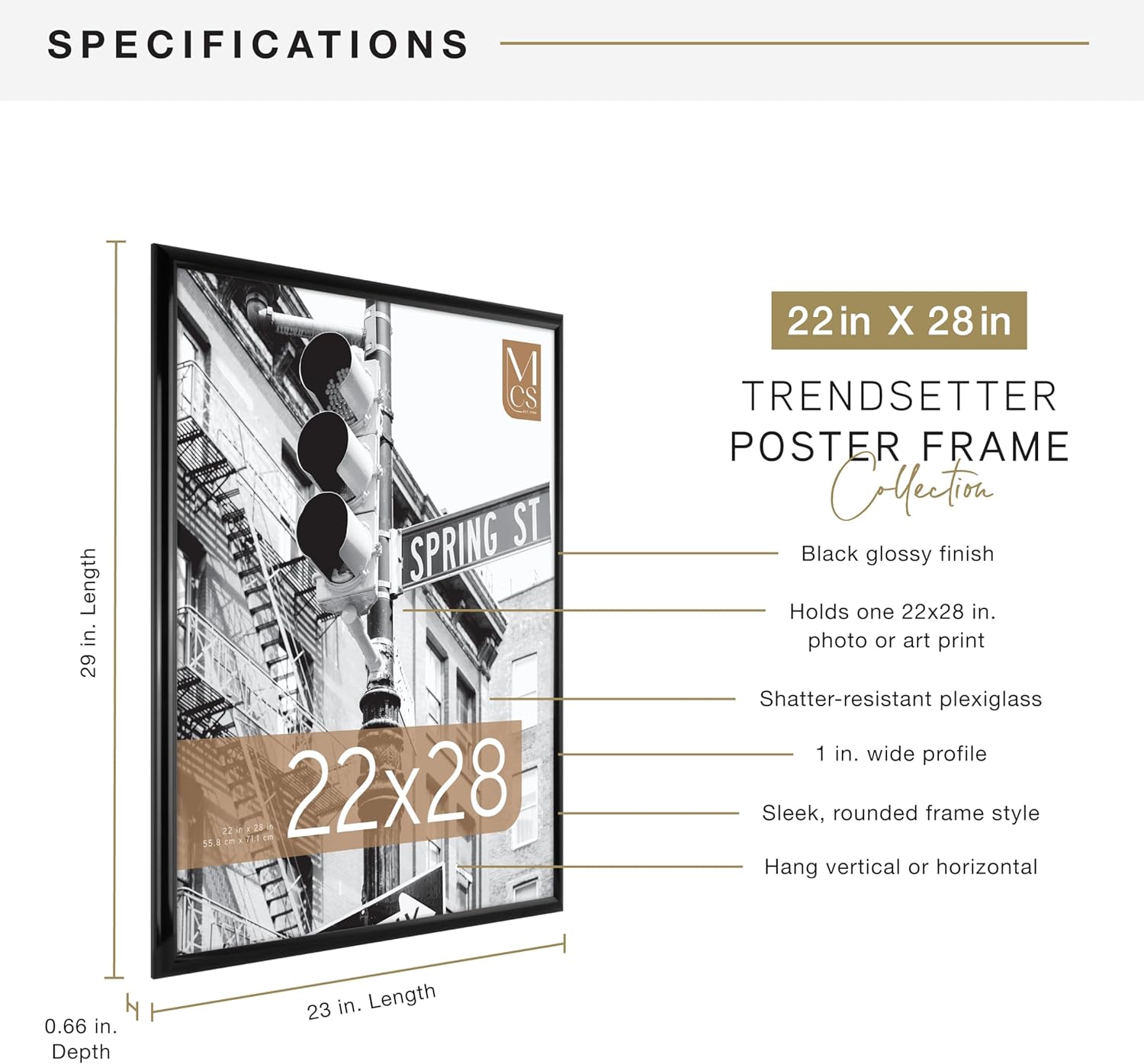 - VERSATILE DECOR: With a passion for design, trend, and functionality, MCS delivers best-in-class products, like our modern picture frames, that help make your house a home; Showcase posters, photographs, or puzzles with the MCS Trendsetter Frame collection; With multiple sizes and finishes to choose from, you can outfit your living room, bedroom, or home office with sleek, contemporary wall decor