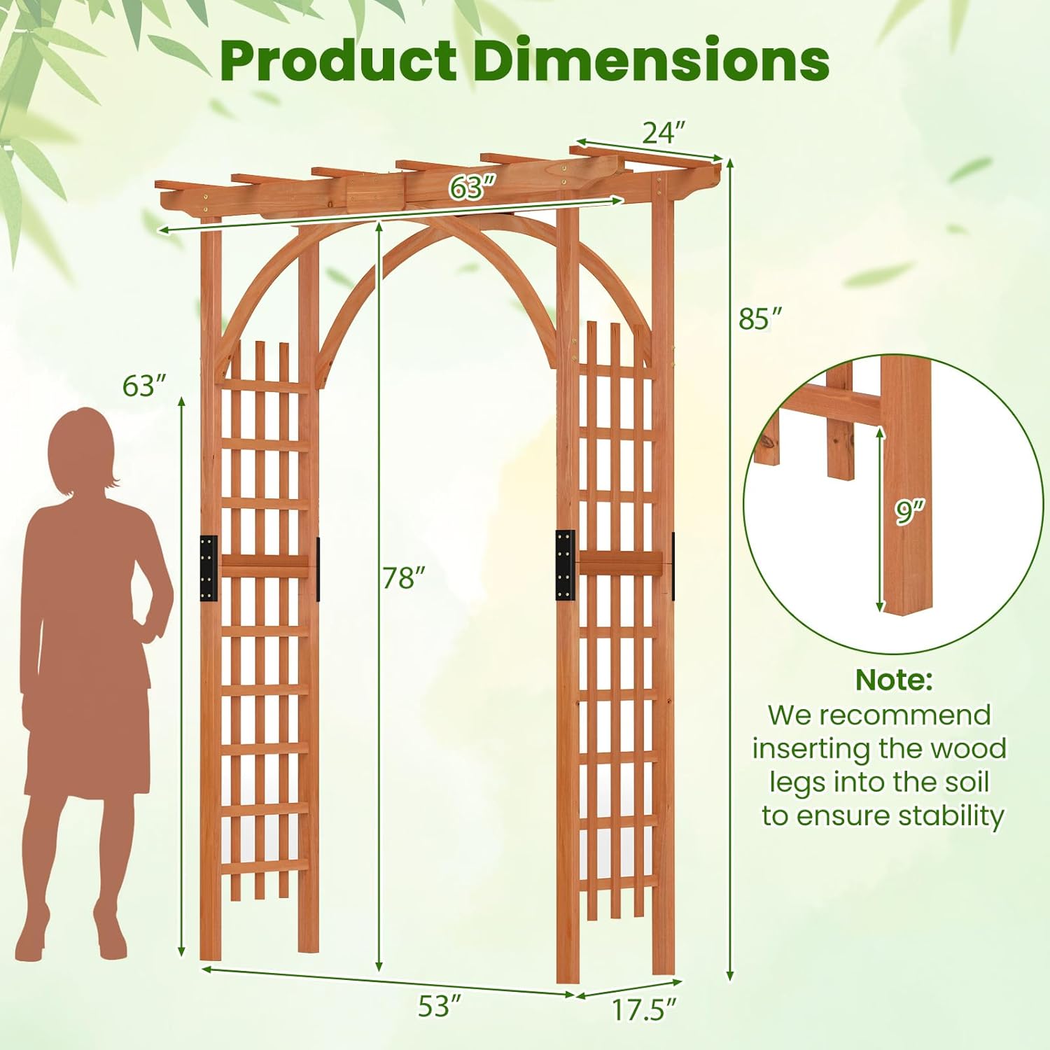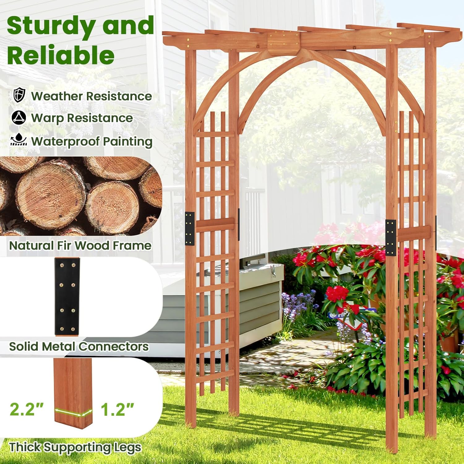 - 【Environmental Material】Our garden arch is made with natural fir wood, making it weatherproof and stable for long-term use. It's an environmentally friendly choice that works in harmony with your plants to create a thriving, beautiful outdoor space.