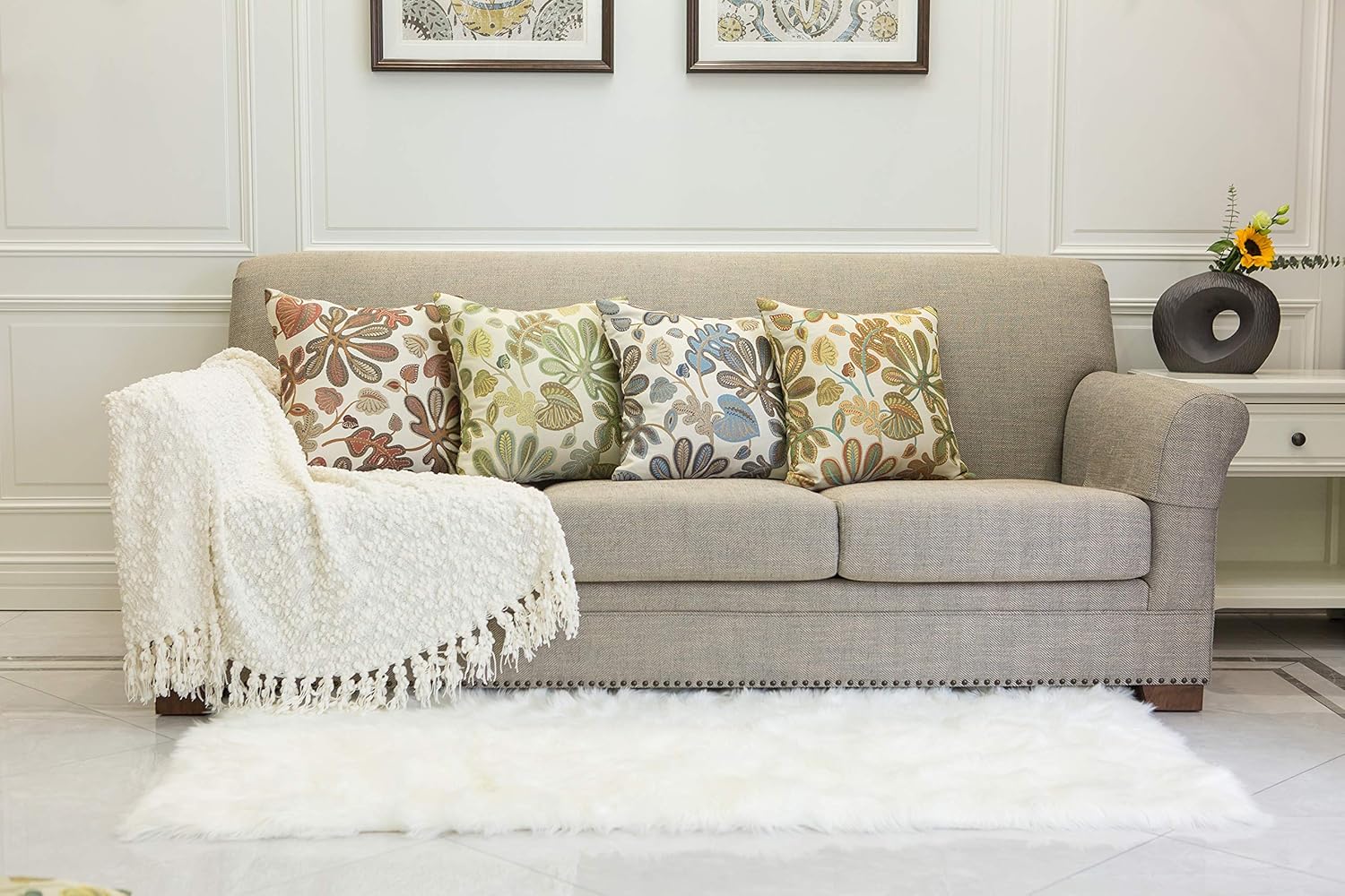 Set of 2 Jacquard Tropical Leaf Pattern Throw Pillow Covers Decorative Pillowcase 20X20 Inches,Coral Cream