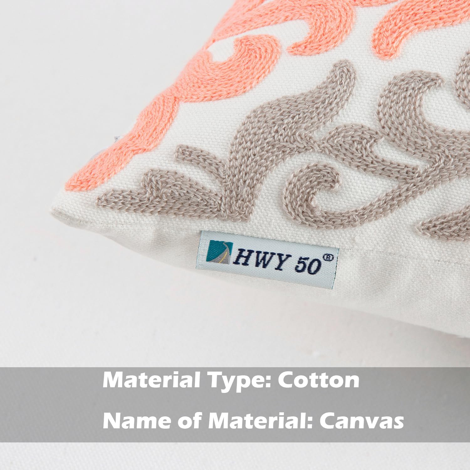 HWY 50 Coral Pink Decorative Throw Pillow Covers 18x18 Inch (1 Piece), Embroidered Cotton Farmhouse Cushion Cover Pillow Case for Sofa Couch Living Room Bed Bedroon, Floral Geometric