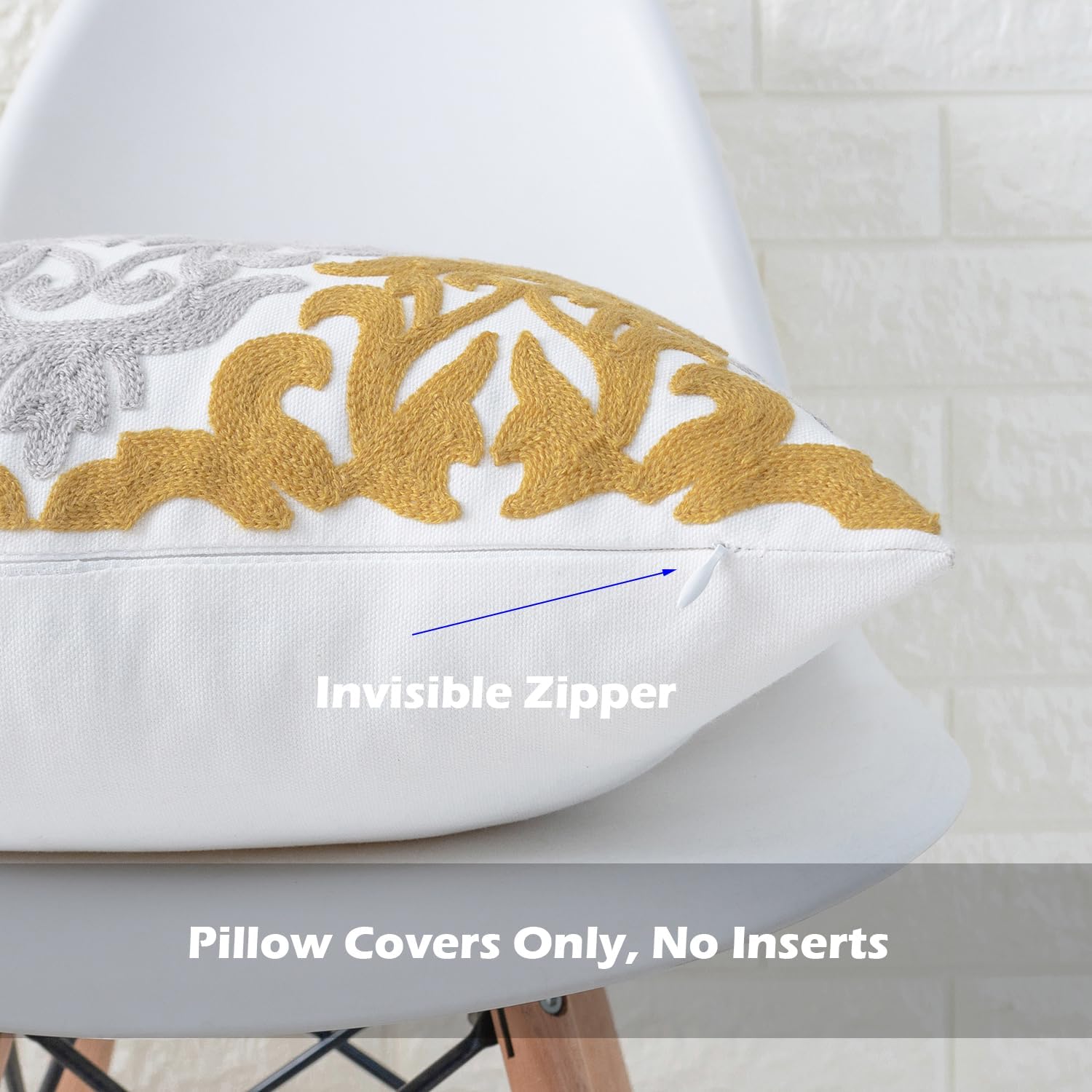 HWY 50 Mustard Yellow Decorative Throw Pillow Covers 18x18 Inch (1 Piece), Embroidered Cotton Farmhouse Cushion Cover Pillow Case for Sofa Couch Living Room Bed Bedroon, Floral Geometric