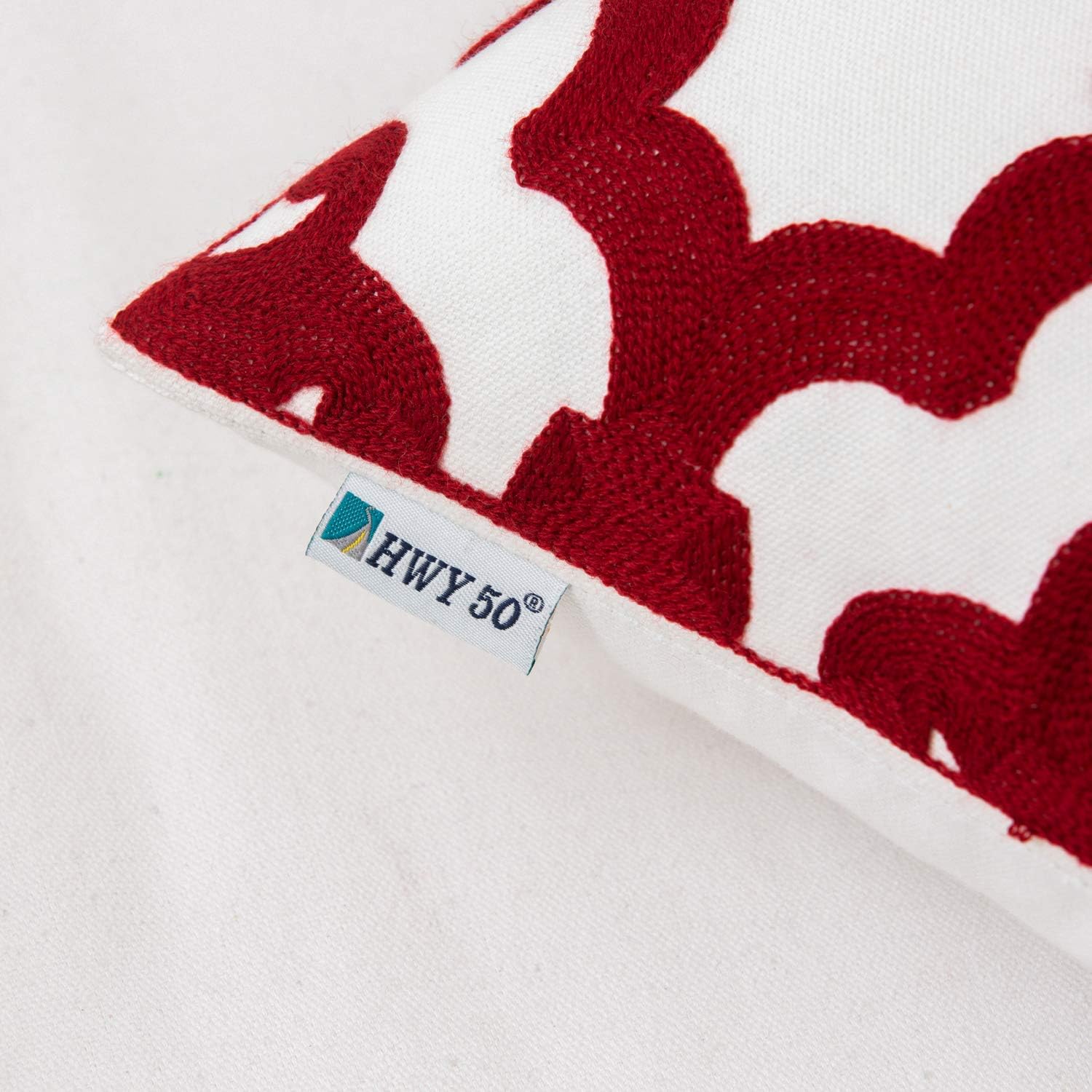 HWY 50 Red Decorative Throw Pillow Covers 18x18 Inch (1 Piece), Embroidered Cotton Farmhouse Cushion Cover Pillow Case for Sofa Couch Living Room Bed, Geometric