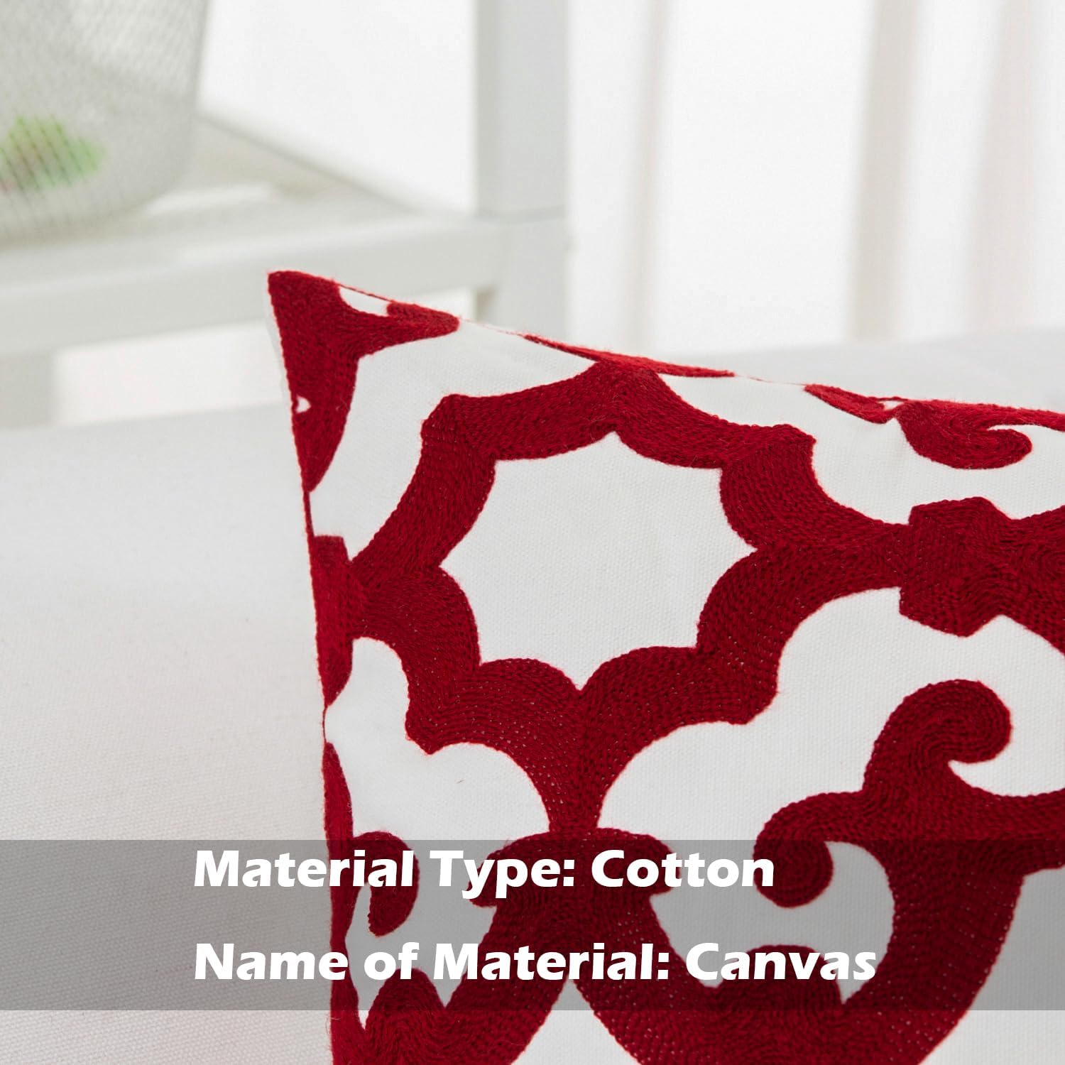 - Size & Material: This 18 x 18 inch (18 by 18) square throw pillow cover is made of 100% thick cotton canvas for durability. The crisp white fabric is soft yet sturdy, featuring beautiful single-sided embroidery for an elegant touch