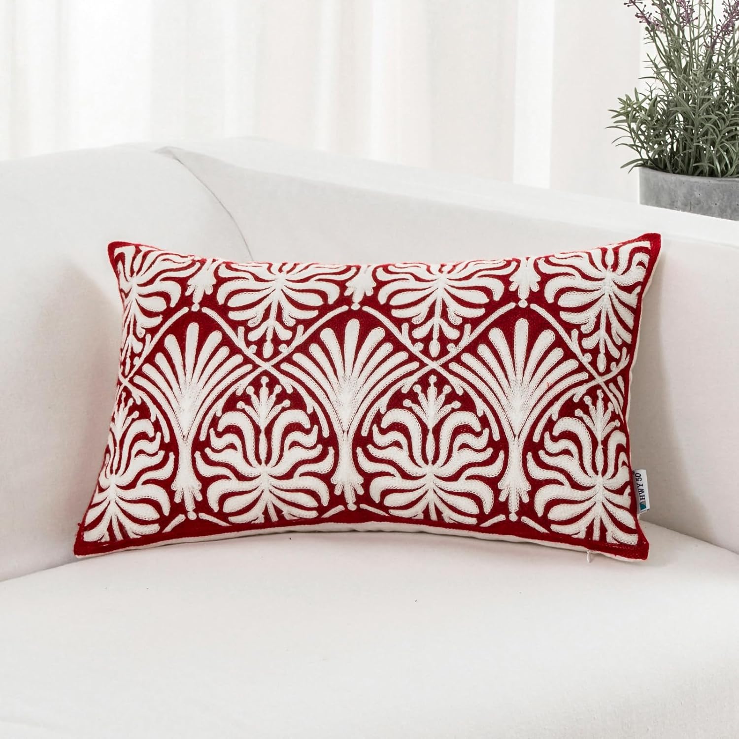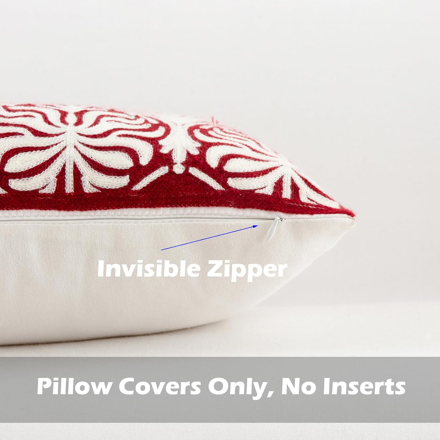 HWY 50 Burgundy Red Decorative Lumbar Pillow Cover Rectangle 12x20 Inch (1 Piece), Embroidered Cotton Farmhouse Cushion Cover Pillow Case for Sofa Couch Living Room Bed, Minimalist Floral