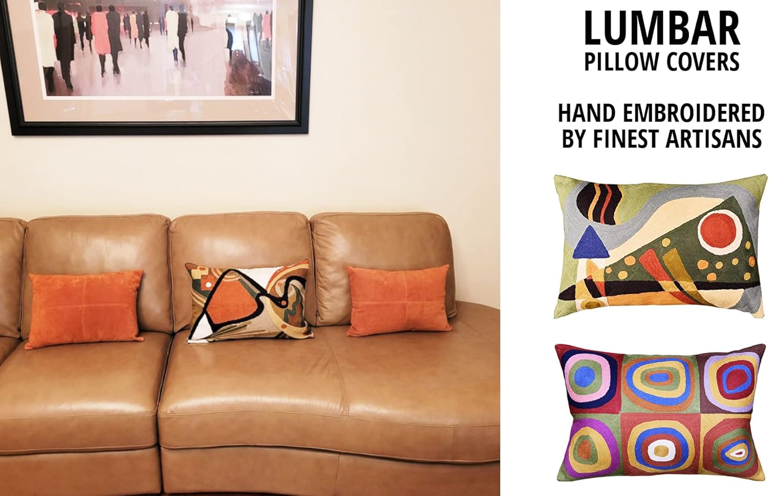 Lumbar Modern Pillow Cover - Kandinsky in Flow Burnt Orange Abstract Farmhouse Pillowcase Modern Chair Cushion Contemporary Outdoor Cushions Hand Embroidered Wool Size 14x20