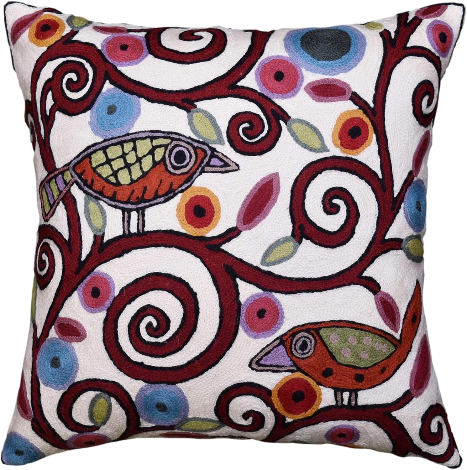 - 🦢 DYNAMIC COLORS AND MOTIF DESIGN: Enliven your space with the charm of Birds Floral tree of Life toss pillow covers. These hand-embroidered treasures seamlessly blend artistic elements, creating a harmonious design and an air of sophistication. Pillow insert not included, showcasing only the cover for sale. Featuring a zipper closure on the back, the pillow cover size is 18 x 18" (45 x 45 cms). With a non-reversible design and backing in canvas, these pillows redefine your decor.