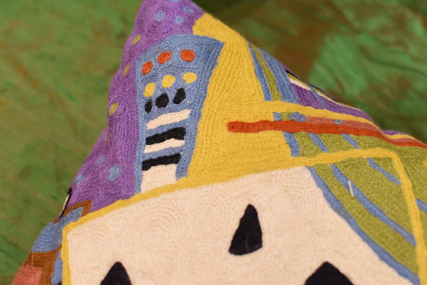 - 👍 MODERN THROW PILLOW COVER - HAND EMBROIDERED: These colorful decorative modern throw pillow covers are inspired by the art of Kandinsky and are hand embroidered in soft wool to perfection, stitch by stitch, by the finest artisans, creating an extraordinary all modern abstract pillow for your home decor. A close-up view of this all modern accent pillow cover allows you to see the amazing fine chain-stitch hand embroidery. A perfect modern sofa pillow for your contemporary couch.