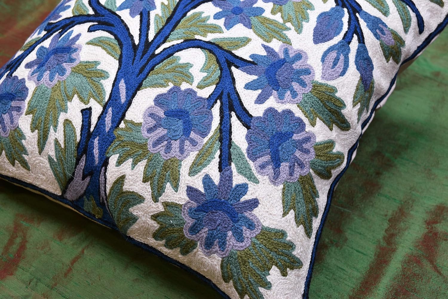 - 👍 DYNAMIC COLORS AND MOTIF DESIGN: These unique hand embroidered Blue Indigo floral tree of life toss pillow covers would bring together the artistic elements of any room, creating a harmonious design and perfect air of sophistication. Pillow insert not Included, Zipper closure on back. Pillow Cover Size: 18 x 18" (45 x 45 cms) Approx. Pillow Cover is not Reversible, Backing: Canvas (See additional Pictures)