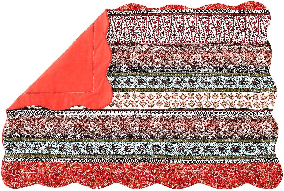 - Reversible Pillow Shams Set: one side is striped classical pattern; the other side is pure red