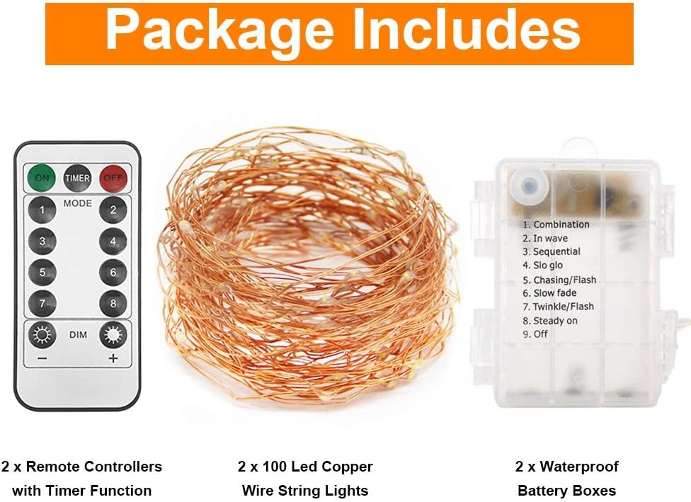 - Battery Powered and Remote Control: Require 3 AA batteries for each string lights for adjust modes. With a remote in hand, you can adjust the brightness, switch 8 modes, set timer for 6 hours on and 18 hours off per day