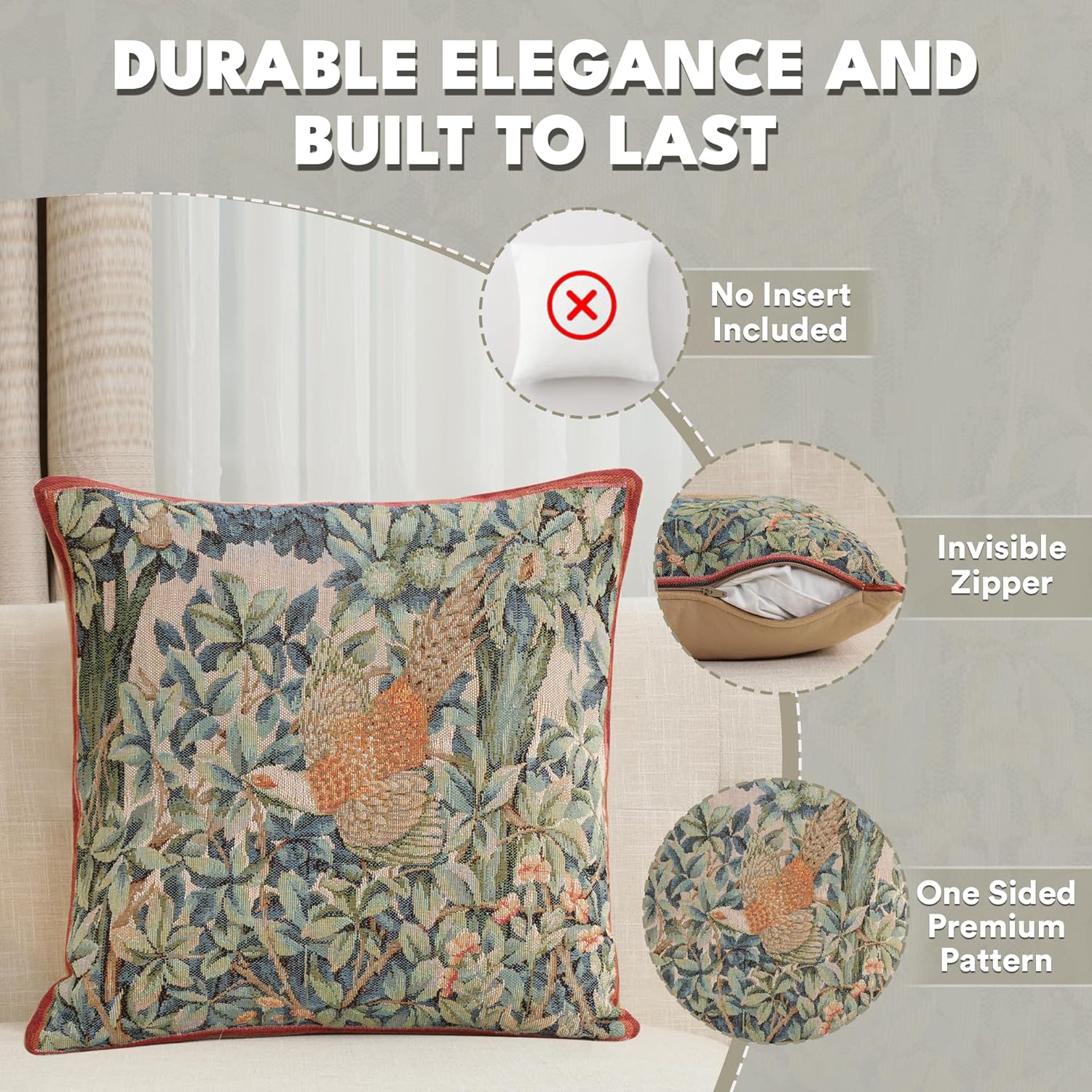 - Timeless Durability: Elevate your decor with our skin-friendly William Morris pillow covers 14”X14”, where quality and style come together. A sturdy hidden zipper ensures easy pillow insertion/removal, while the overlock stitches prevent seam ripping. Unlike thin printed cushion covers prone to tearing, our decorative pillows for couch with a super-soft backside are crafted with thick premium threads for long-lasting quality. THE PACKAGE INCLUDES A SINGLE TAPESTRY PILLOW COVER WITHOUT AN INSERT
