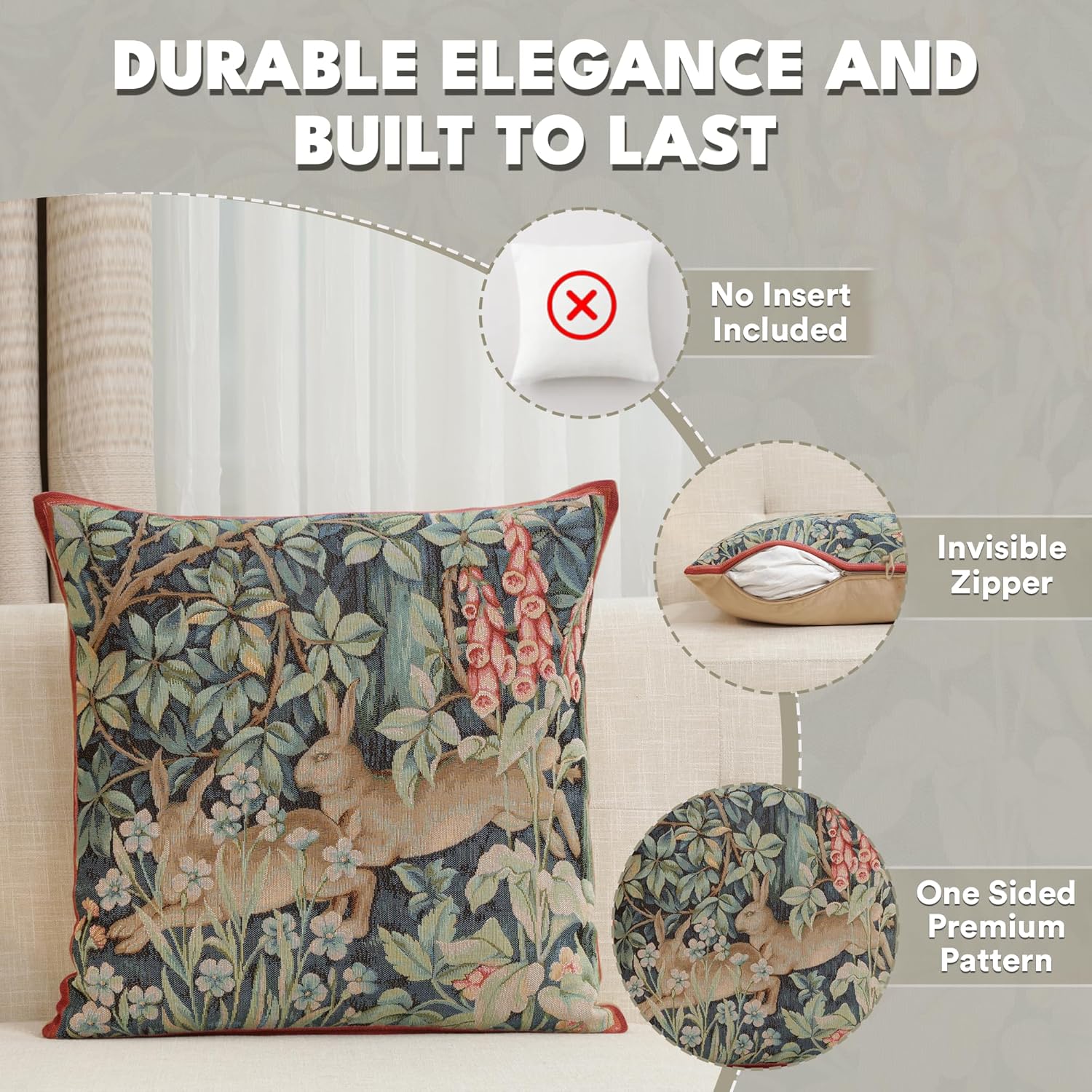 Charlotte Home Furnishings Decorative Tapestry Pillow Cover 19x19 in, Green Hares Couch Throw Pillow Cover, French Country Square Cushion Cases for Living Room Home Decor, Soft Cotton Jacquard Woven