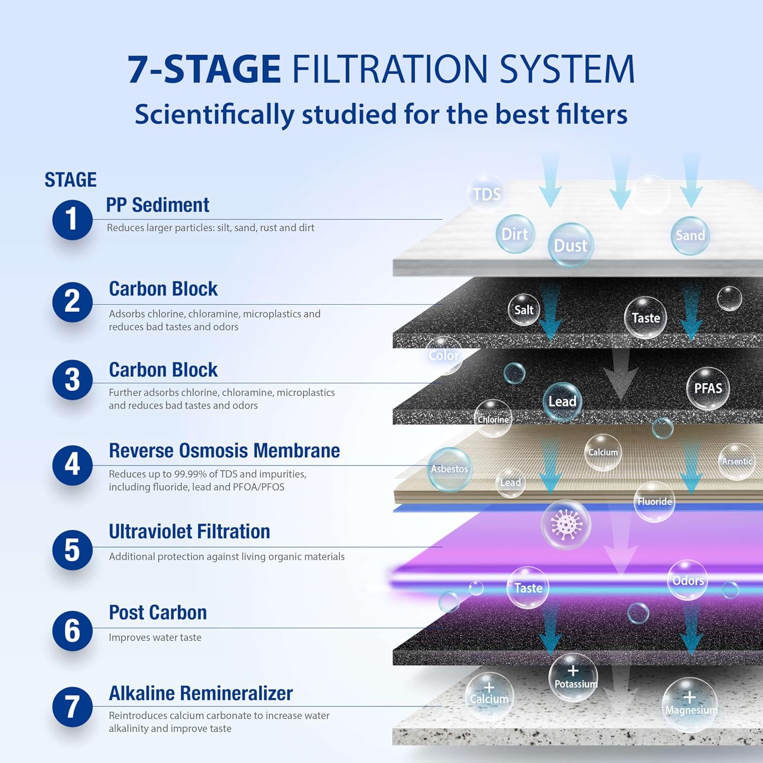 - Supreme quality – designed in USA to water safety & your health. Effective in removing up to 99% of contaminants including arsenic, chlorine, lead, fluoride, heavy metals, virus and 1000+ contaminants
