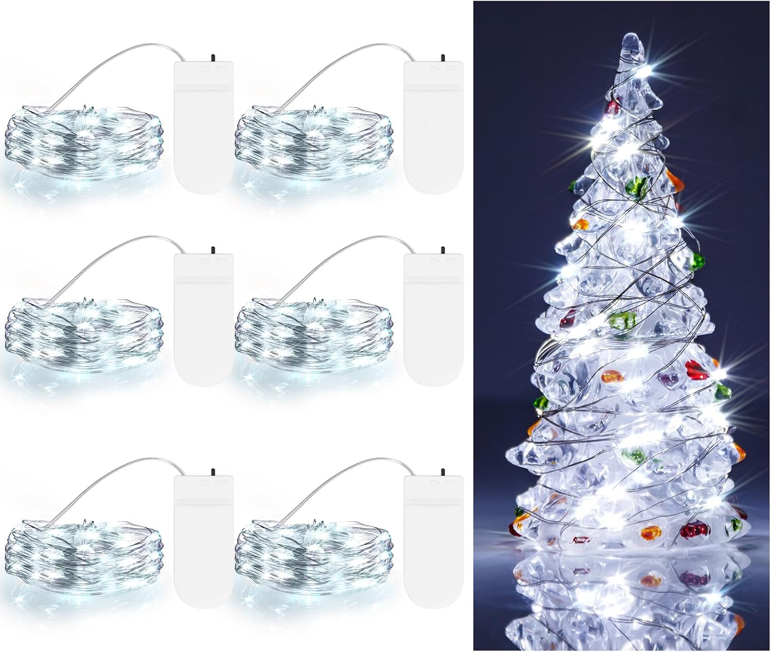 TingMiao Cool White Fairy String Lights Battery Operated LED Starry Lights 7.2ft 20 LEDs Silvery Copper Wire for Christmas DIY Decoration Wedding Party (6 Pack)