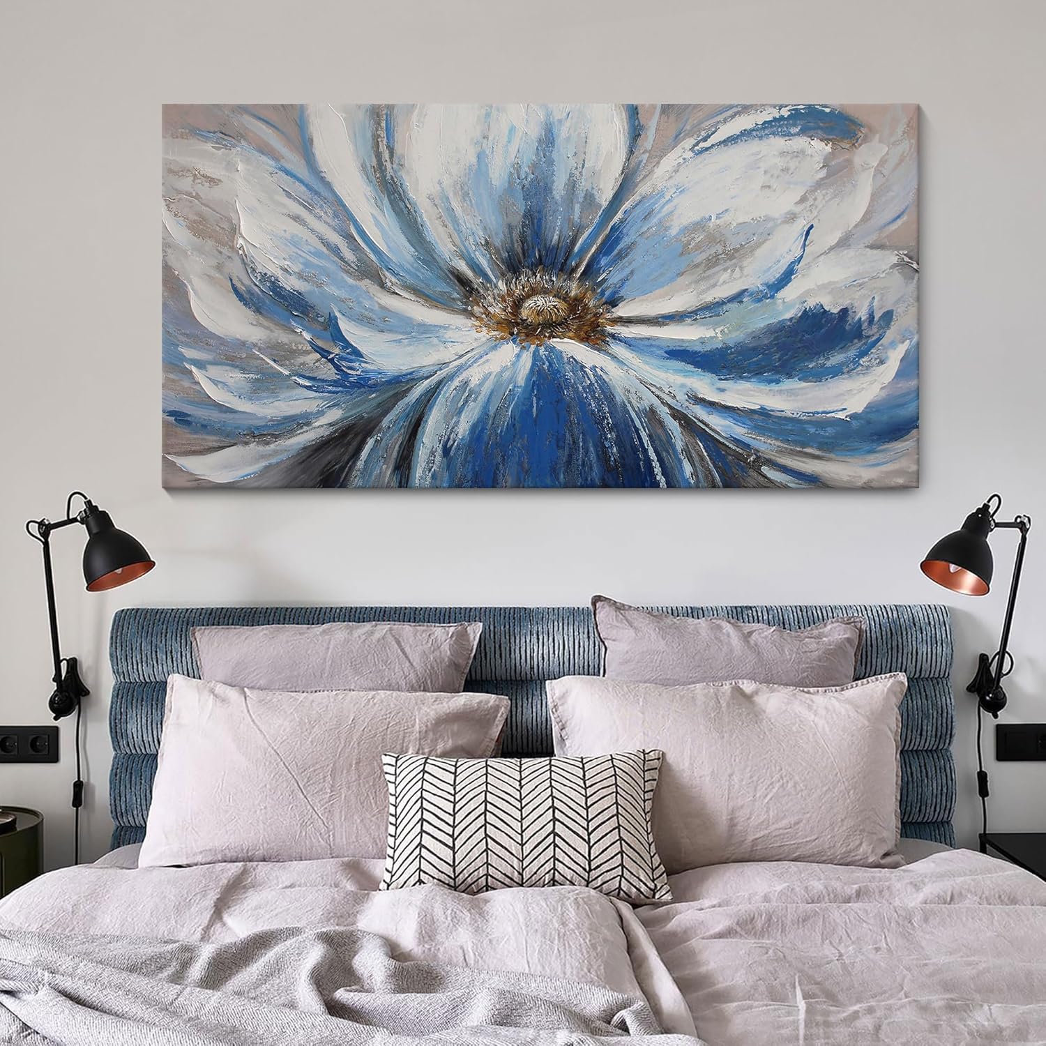 Flower Canvas Wall Art for Living Room Large White Blue Flower Picture Giclee Print Painting Wall Decor Framed Artwork Ready to Hang for Home Bedroom Wall Decoration Size 24x48