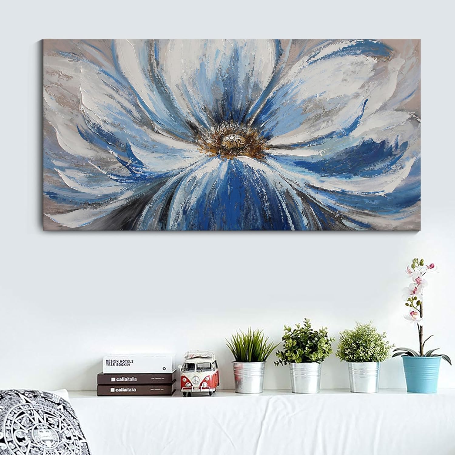 - GICLEE PRINT PAINTING:This flower wall art is not pure hand-painted.It is painted on giclee printed canvas,5% hand-painted.The colors are the same as the picture show.But due to different monitors the colors may appear slightly different to the picture.