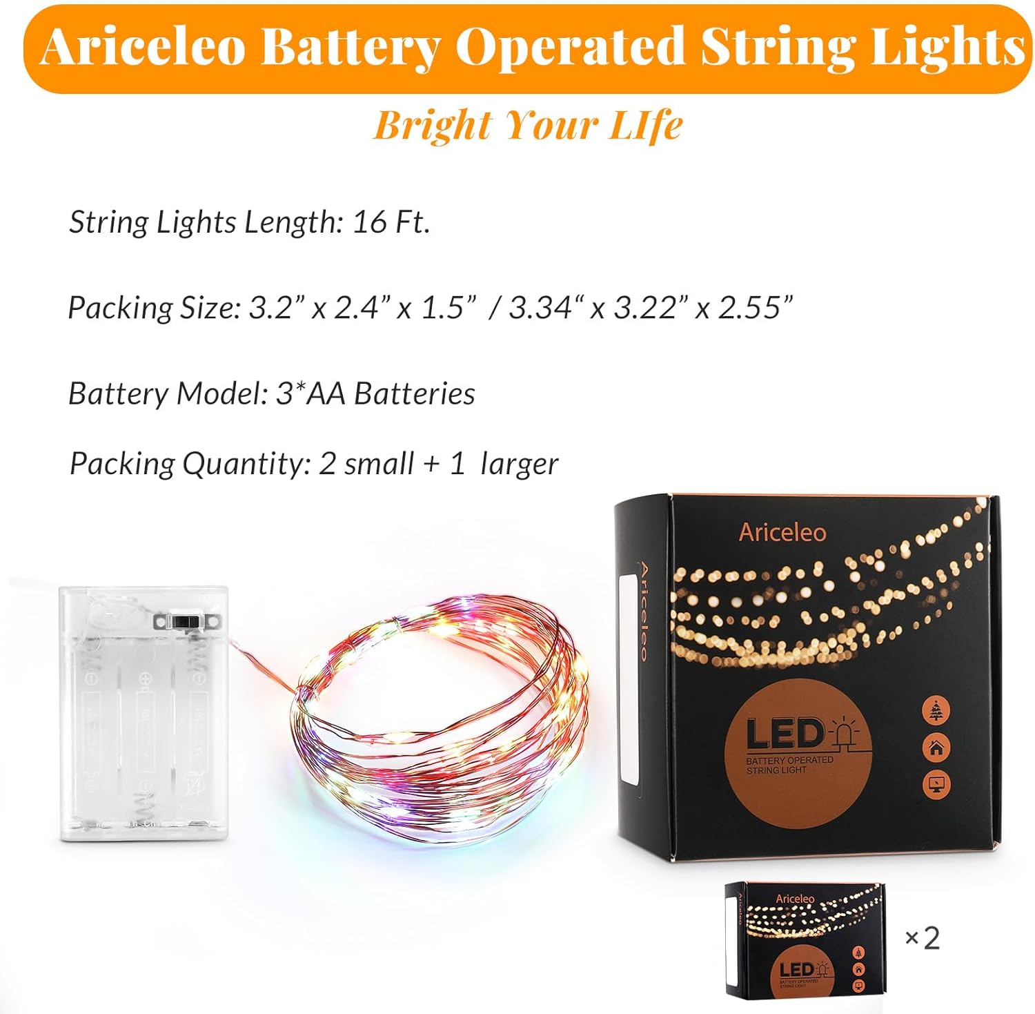 Led Fairy Lights Battery Operated, 2 Packs Mini Battery Powered Copper Wire Starry Fairy Lights for Bedroom, Christmas, Parties, Wedding, Centerpiece, Decoration (5m/16ft Multi-Colored)