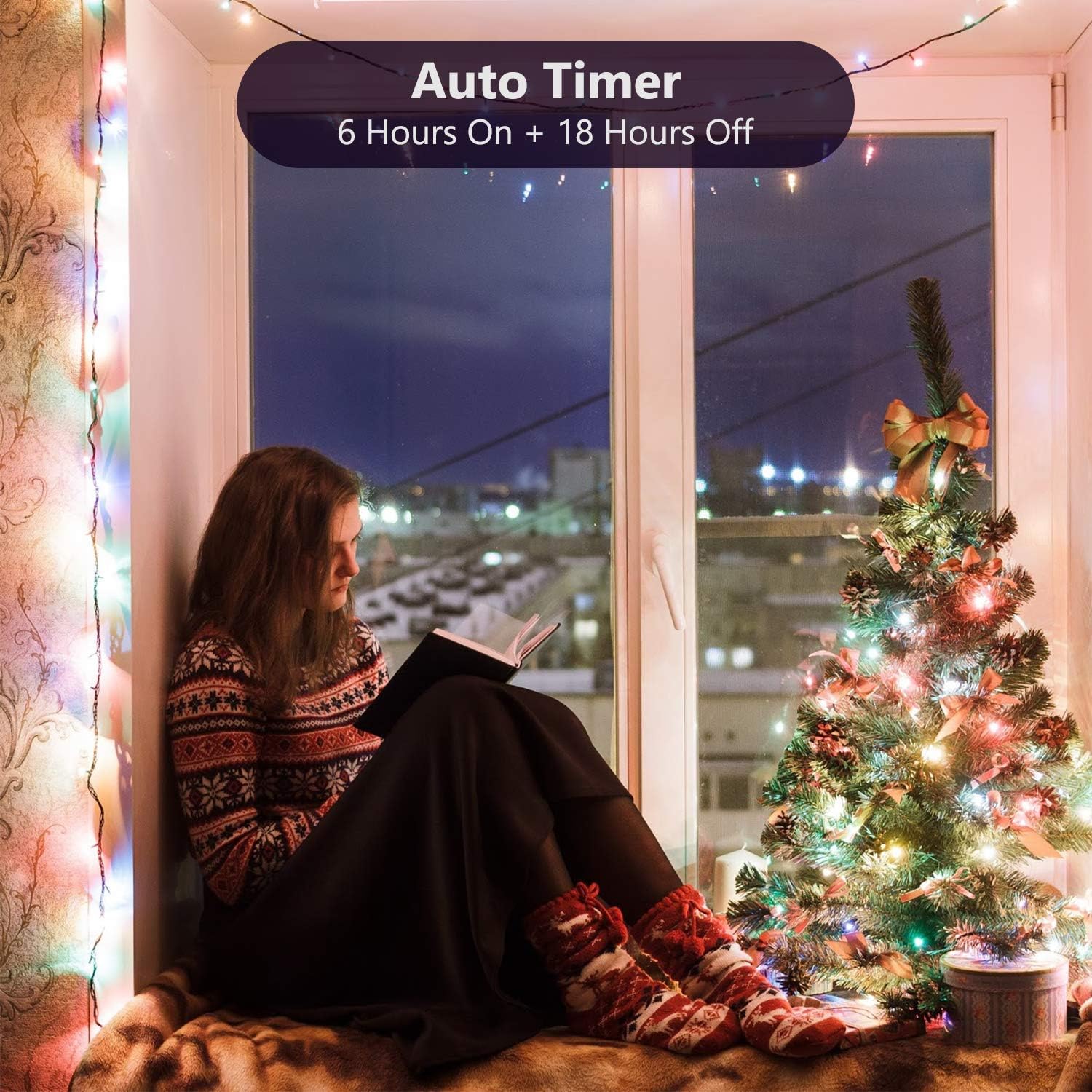 - 8 Modes & Auto Timer: These clear multicolor string lights have 8 gorgeous lighting modes with built-in auto-timer 6 hours "ON" and 18 hours "OFF", which starts once you activate any one of the 8 modes on the battery holder, so it will automatically time when the light is on. Note: If you change modes before the timer expires then it will stay on that mode for another 6 hours.
