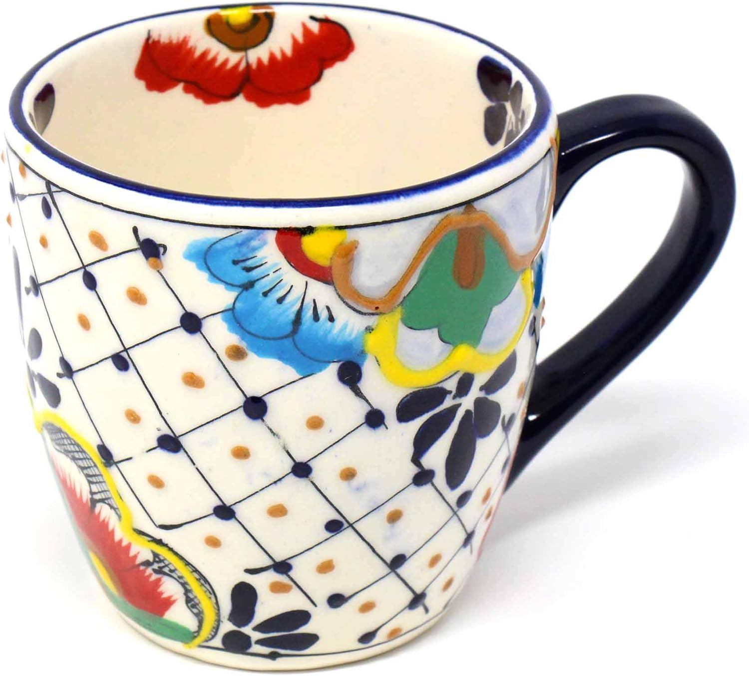 Encantada Handmade Hand-Painted Authentic Mexican Pottery Mugs (1-Pack, Dots & Flowers)