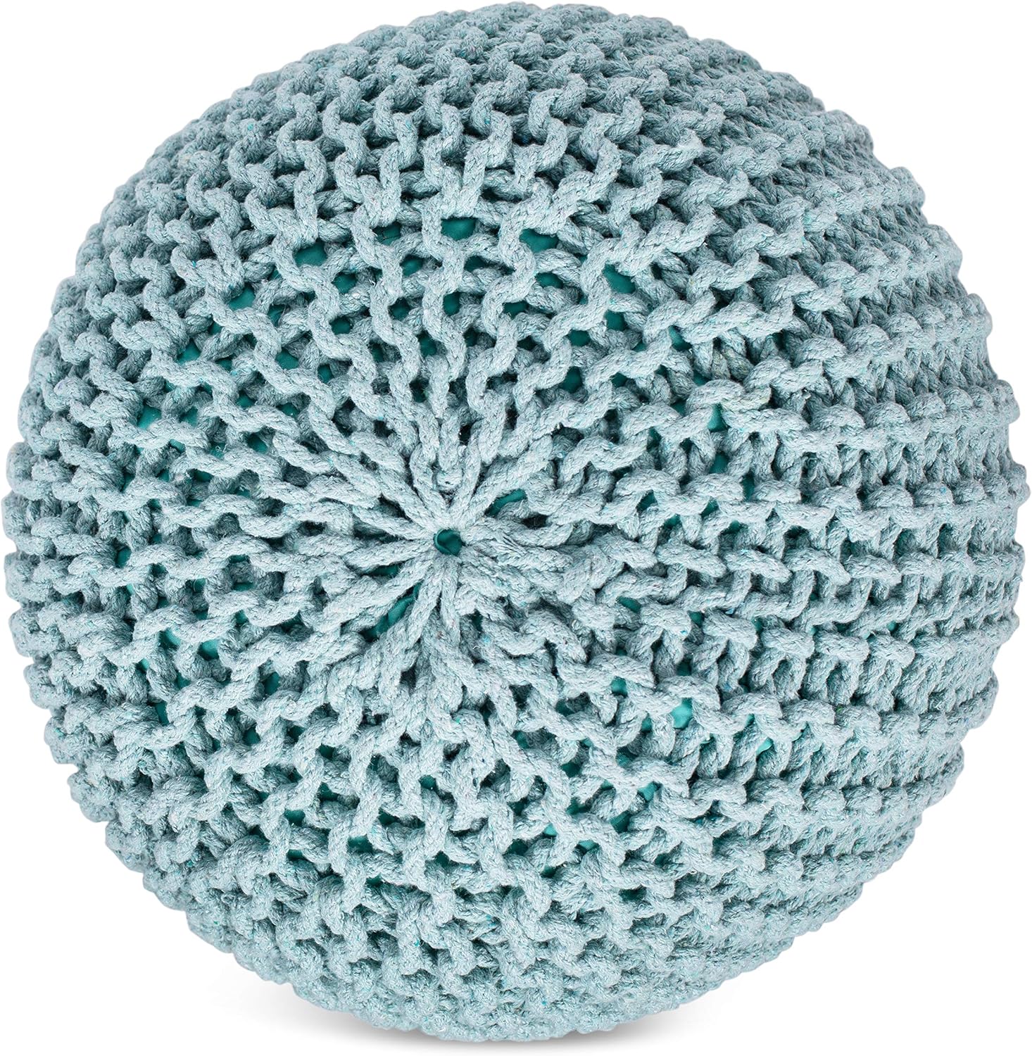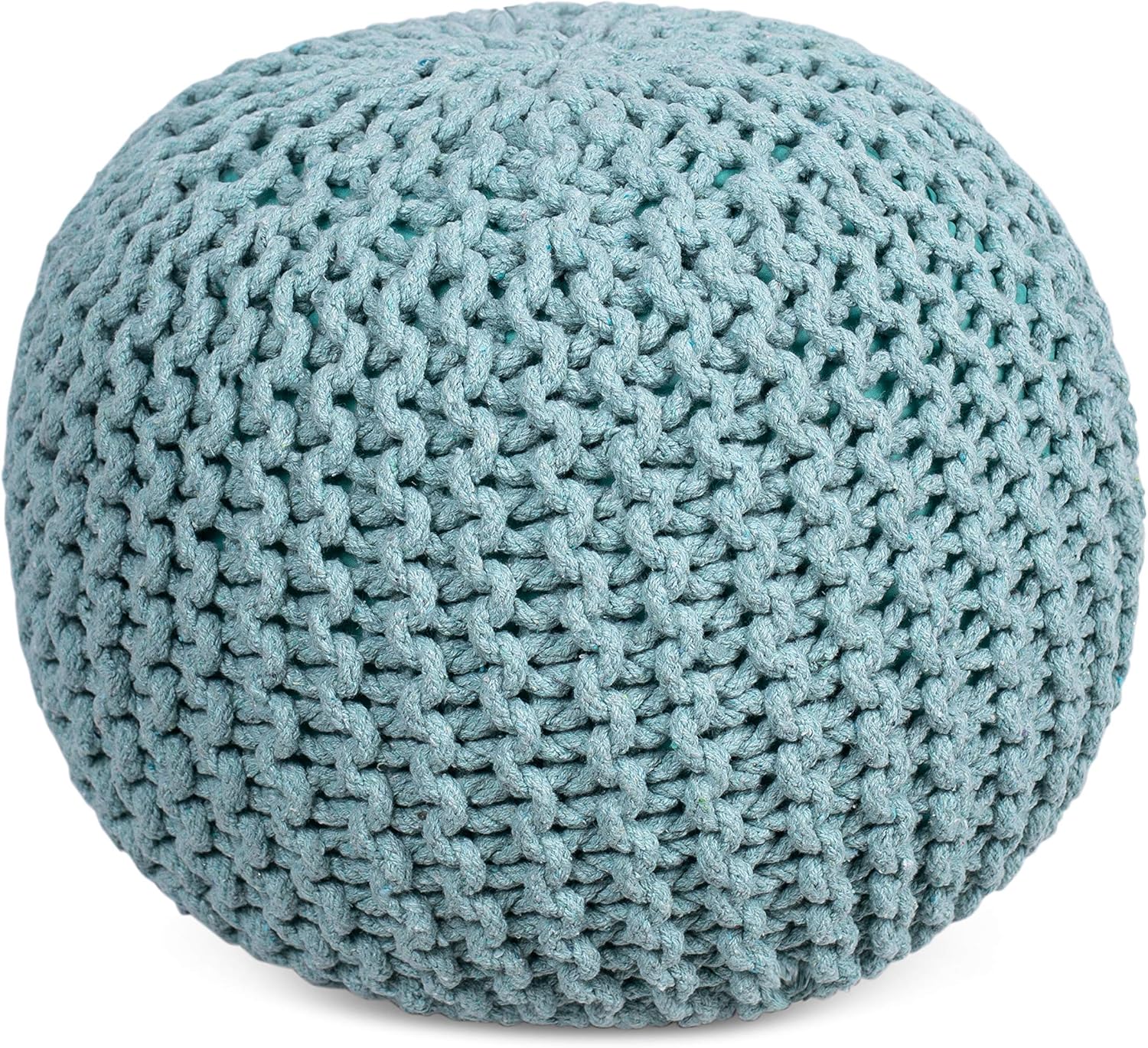 BIRDROCK HOME Round Pouf Ottoman | Cotton Braided Round Foot Stool | Bedroom and Living Room Poof | Sage Green Boho Ottoman | Pouf Foot Rest