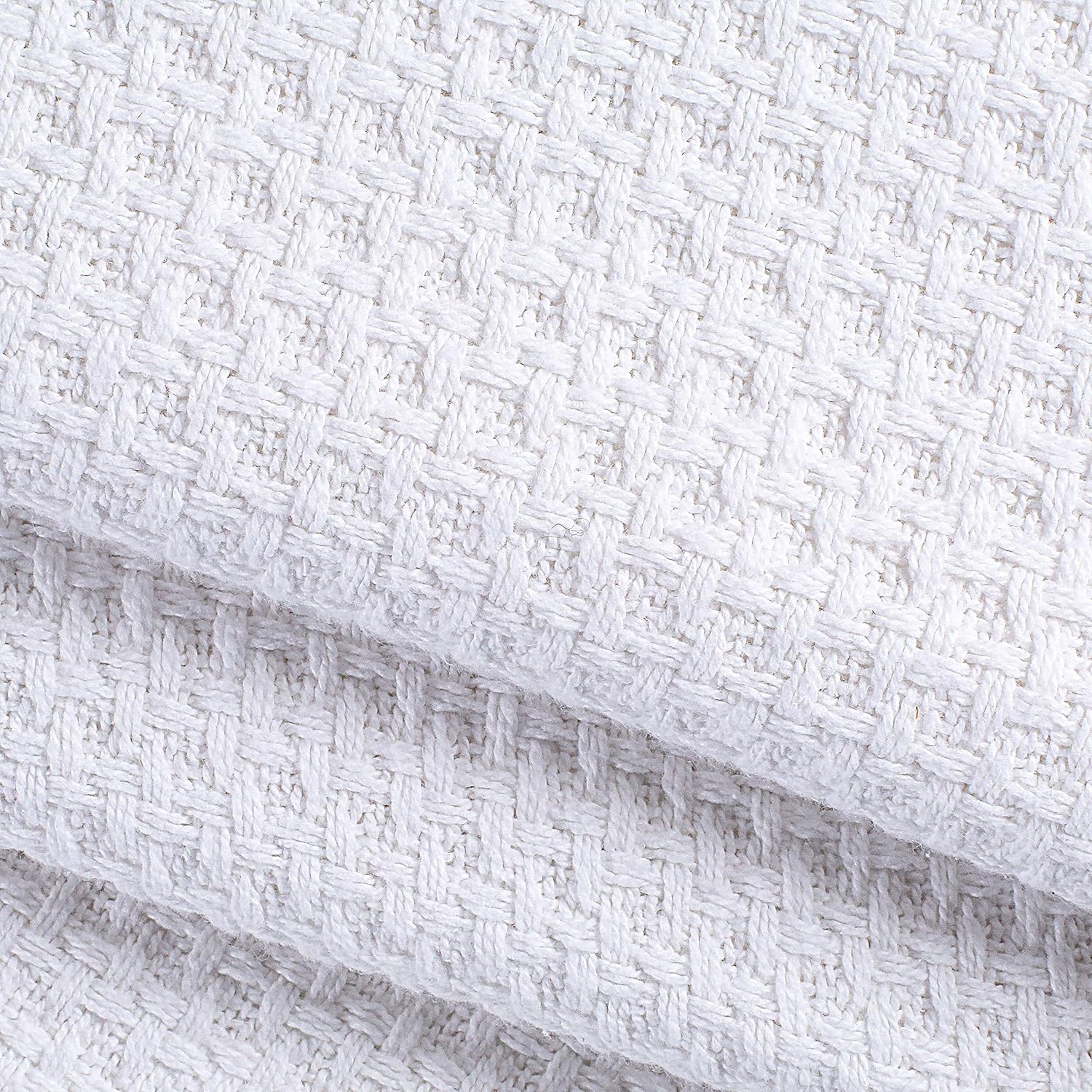 Elvana Home 100% Cotton Bed Blanket, Breathable Bed Blanket Twin Size, Cotton Thermal Blankets Twin, Perfect for Layering Any Bed for All Season, White