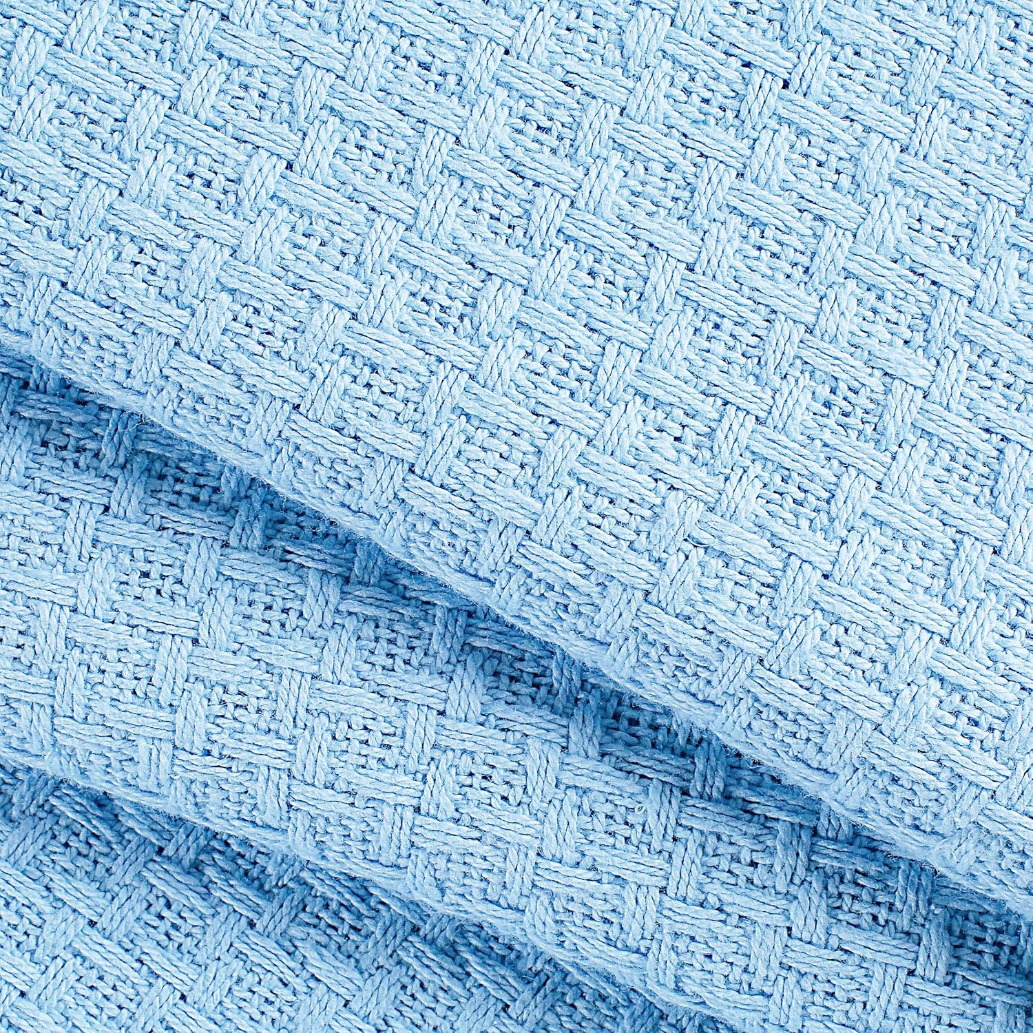 Elvana Home 100% Cotton Bed Blanket, Breathable Bed Blanket King Size, Cotton Thermal Blankets King, Perfect for Layering Any Bed for All Season, Light Blue