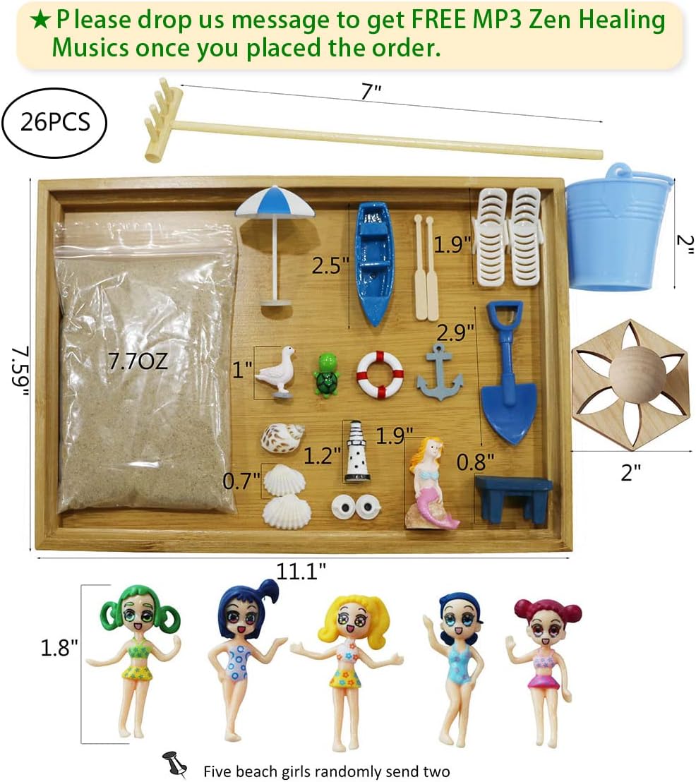 - KIT INCLUDES - The set are well worth the price features 23pcs beach miniatures, including 11 "L* 7.5 "W *1.1 "H Bamboo tray.Use this mini tabletop sand Zen garden! Relieve stress, pursuing inner peace. Wish you enjoy your beach time