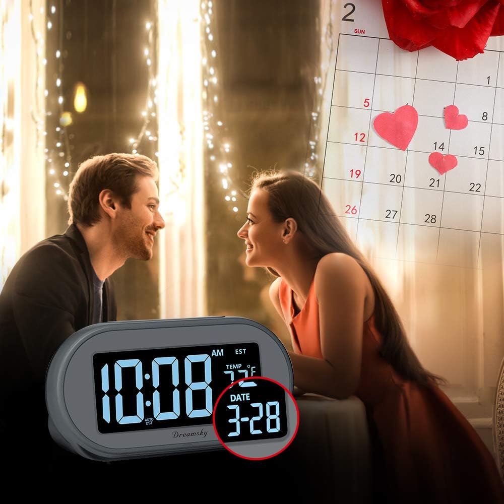 DreamSky Alarm Clocks for Bedrooms, Auto Set Digital Desk Clock for Bedside Nightstand, Electric Clock with Dimmable Brightness Dimmer, Auto DST, USB Port, Date, Temperature, Snooze