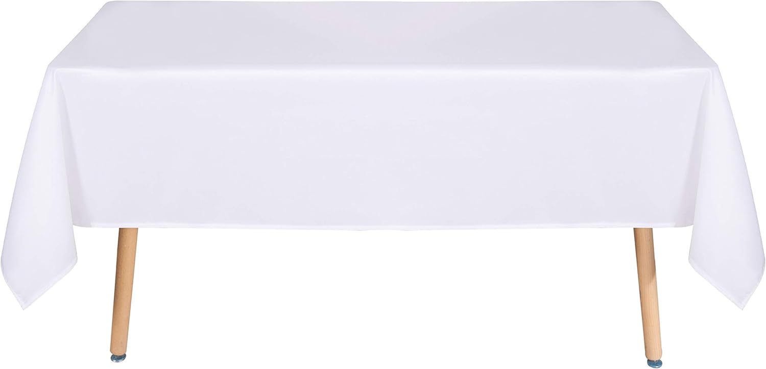 sancua Rectangle Tablecloth - 90 x 156 Inch - Water Resistant Spill Proof Washable Polyester Table Cloth, Decorative Fabric Table Cover for Dining Tables, Buffet Parties and Camping, White