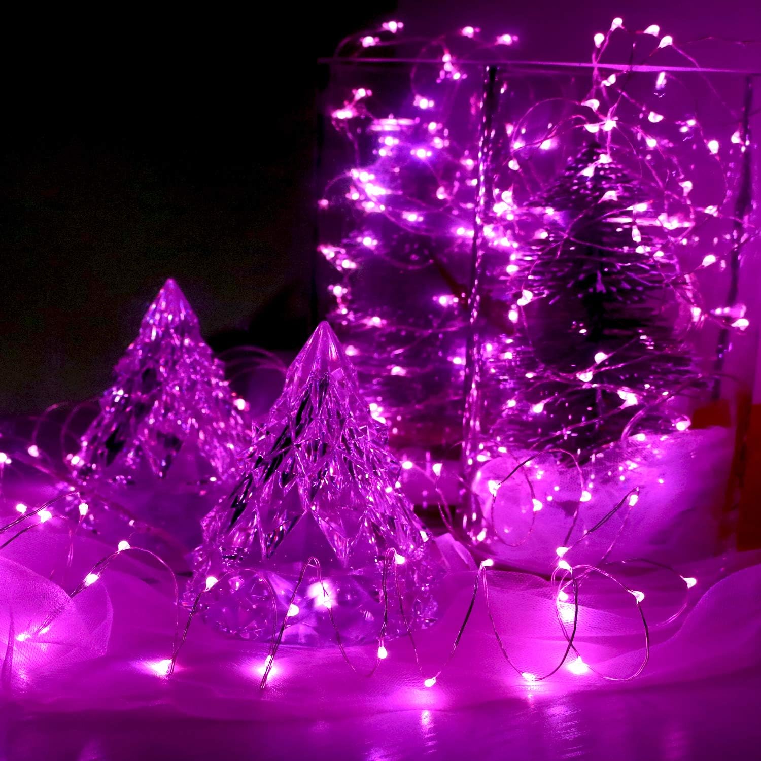 - Battery Operated Fairy Lights:6pcs lights per packing,battery compartment extension cord is 0.6ft,each light is with 6.25 feet flexible thin silvery copper wire with 20pcs bright micro leds, Pink Lighting. They glint in the dark, decorate your patio, deck, front porch,bedroom,wedding, party, shop, restaurant ,room and Thanksgiving,Christmas Centerpiece Decor , And the silvery copper wire disappeared into the night, Leaving only light.
