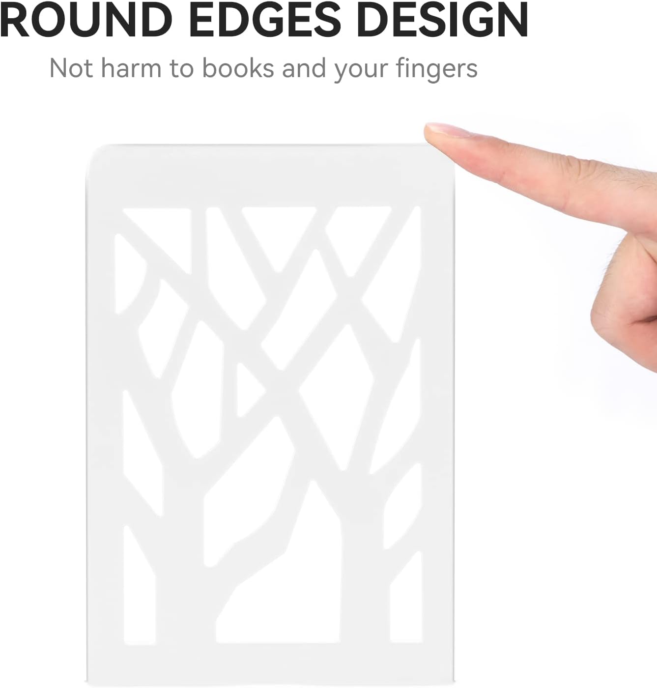 Book Ends, Bookends, Bookends for Shelves, Bookend, Book Ends for Heavy Books, White Metal Book Shelf Holder Home Decorative, Book Stoppers for Shelves, Bookend Supports 4 Pair