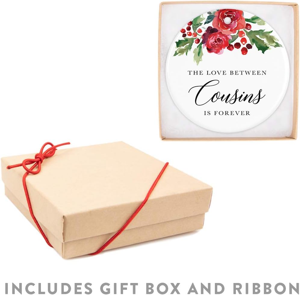 - INCLUDES: 1 round ceramic porcelain ornament designed by Andaz Press, 1 gold cord ribbon, 1 gift box. Celebrate Cousin Love: This cousin ornament 2024 symbolizes the special bond between cousins; a heartfelt christmas ornament cousin that makes a meaningful addition to holiday décor and a keepsake for loved ones