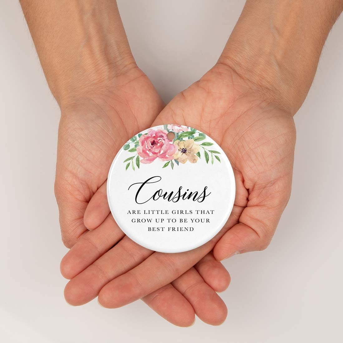 Andaz Press Round Ceramic Porcelain Christmas Tree Ornament Keepsake Gift for Cousins, Cousins are Little Girls That Grow Up to Be Best Friends, 1-Pack