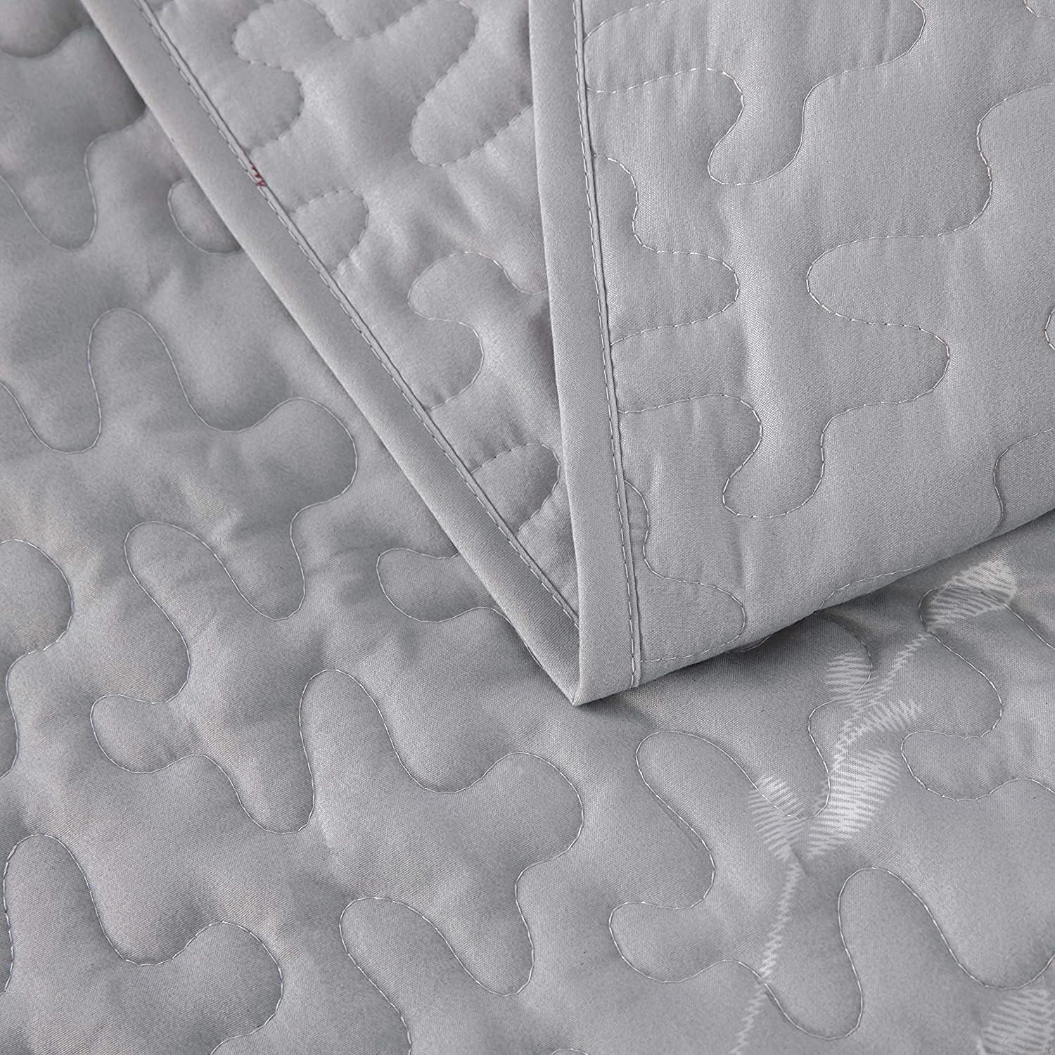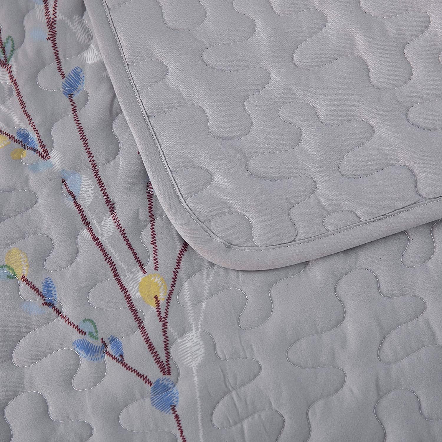 - Design: Floral branches patterns are printed with special printing and dyeing crafts which make color more vibrant and ensure a better color fastness. Sewed with exquisite neat stitching, the grey flowers bedspreads bring a stylish and elegant decoration to your bedroom