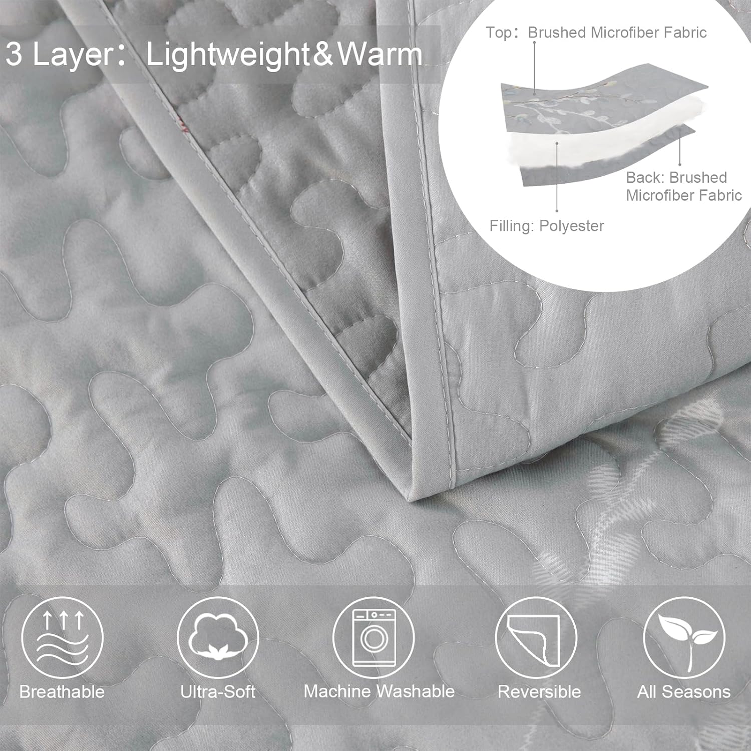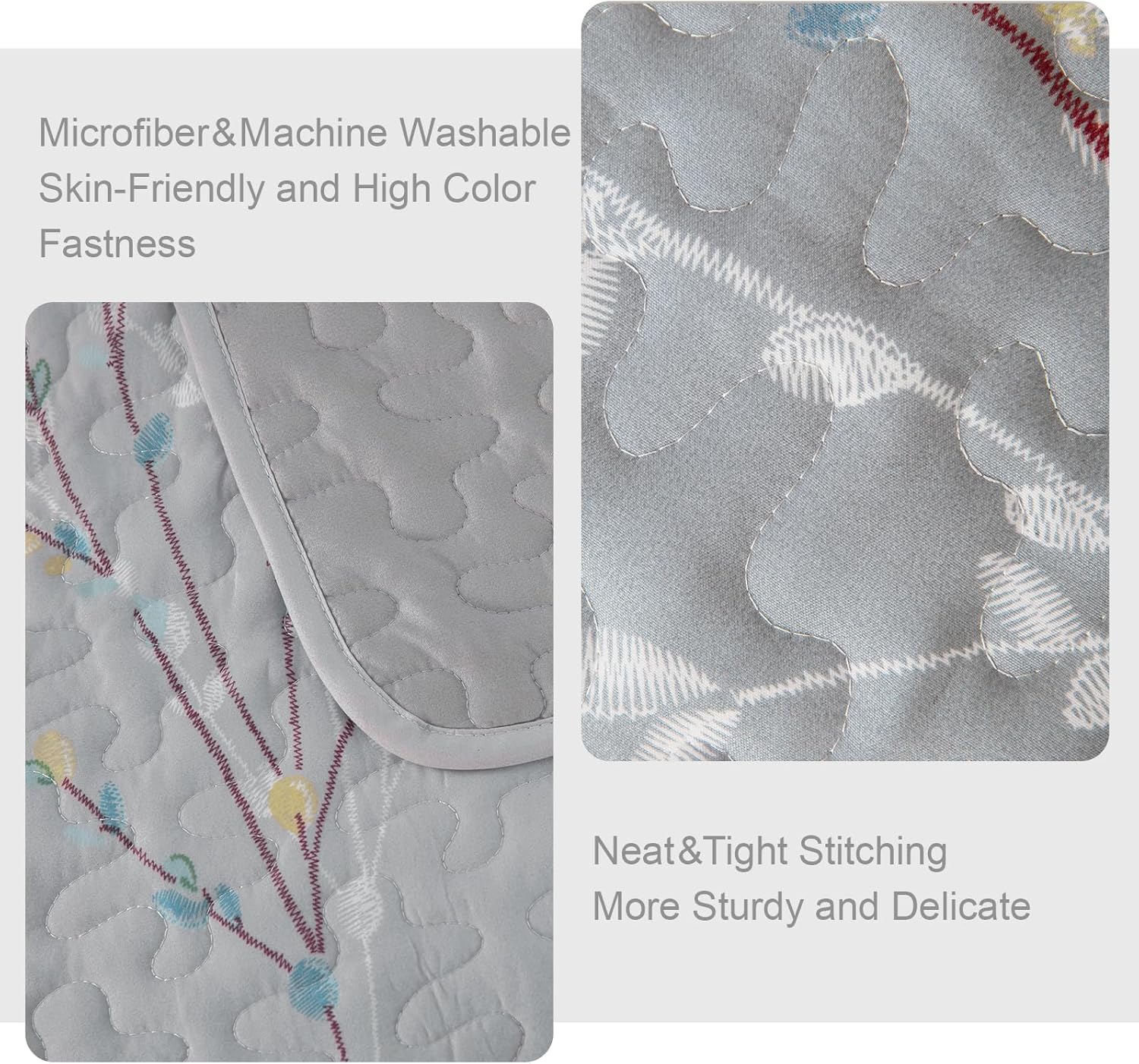 - Design: Floral branches patterns are printed with special printing and dyeing crafts which make color more vibrant and ensure a better color fastness. Sewed with exquisite neat stitching, the grey flowers bedspreads bring a stylish and elegant decoration to your bedroom