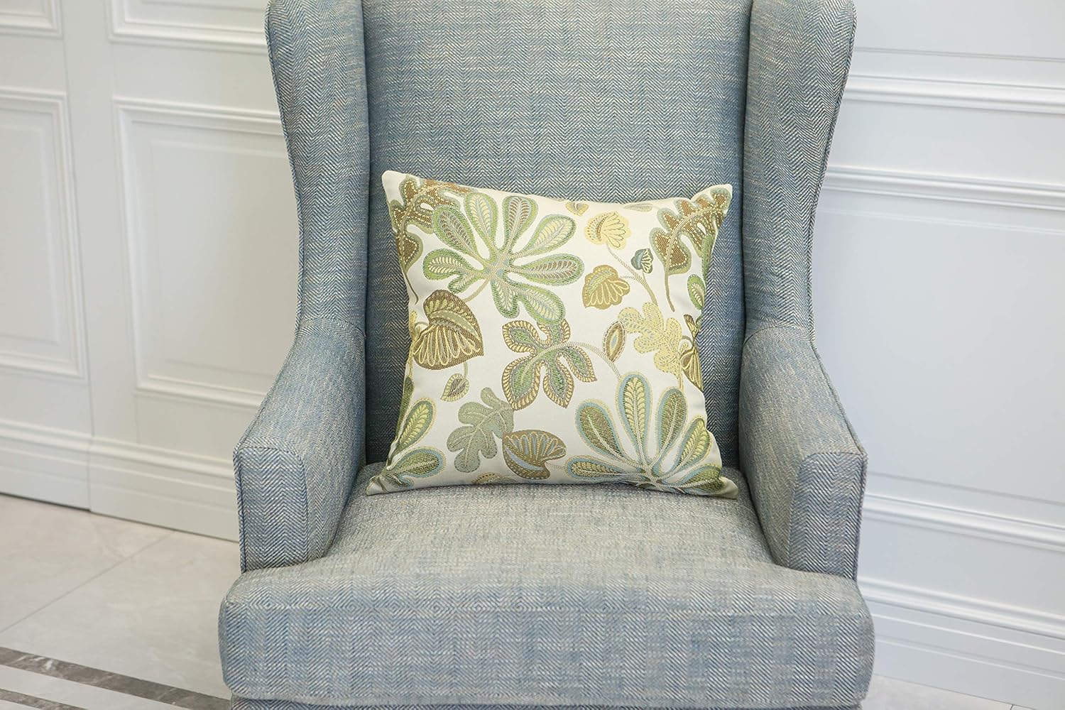 Set of 2 Jacquard Tropical Leaf Pattern Throw Pillow Covers Decorative Pillowcase 22X22 Inches,Green Cream