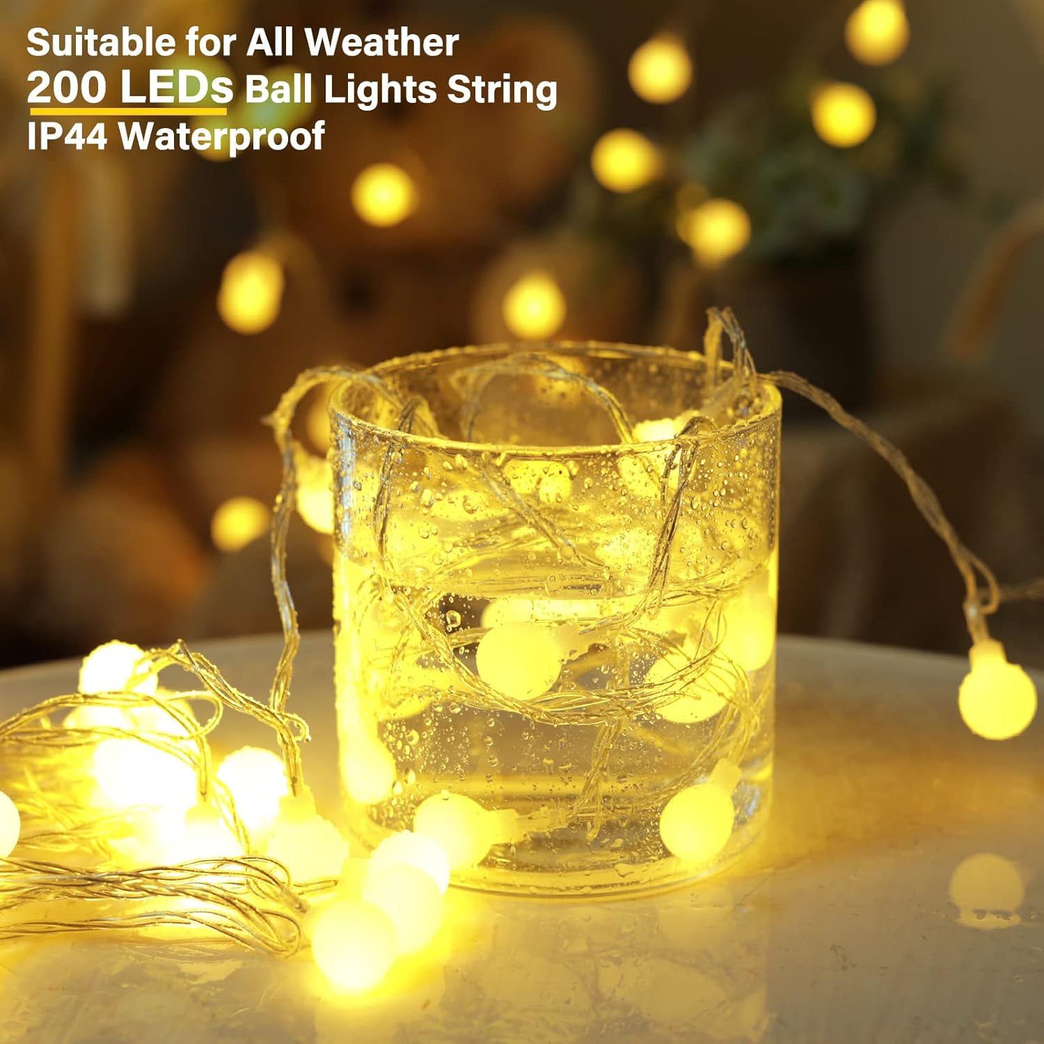 Minetom Mini Globe String Lights, 66 Ft. 200 LED Fairy String Lights Plug in, 8 Modes with Remote, Decor for Indoor Outdoor Party Wedding Christmas Tree Garden, Warm White