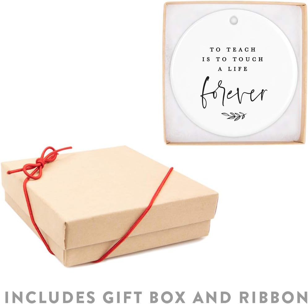 Andaz Press Round Ceramic Porcelain Christmas Tree Ornament for Teacher Thank You Appreciation Graduation Gift, to Teach is to Touch a Life Forever, 1-Pack