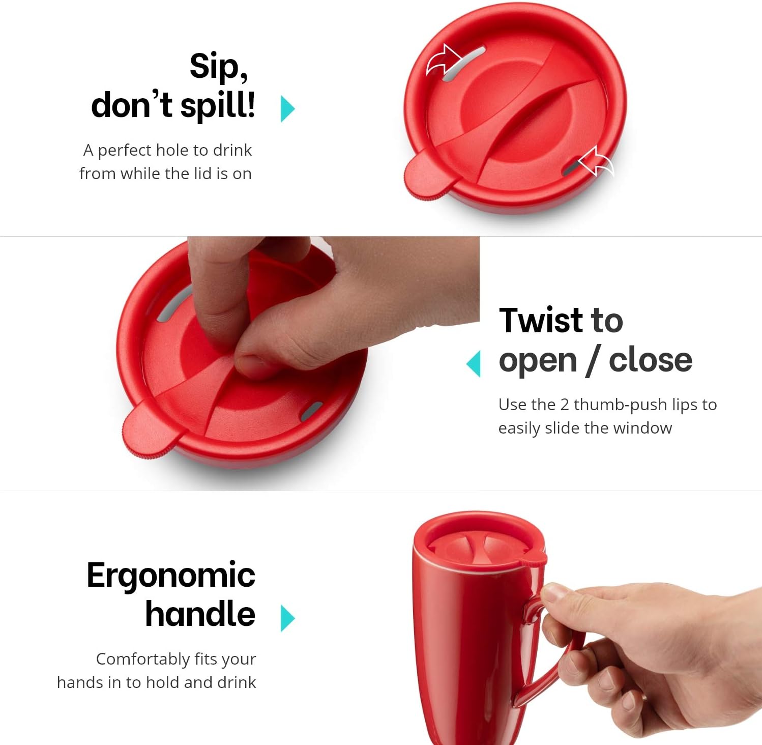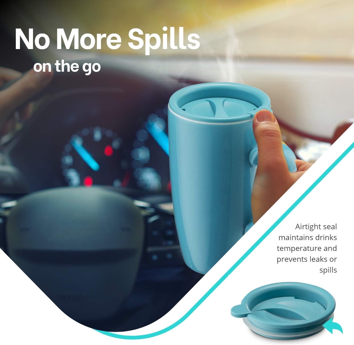 MITBAK 6-Pack Ceramic Coffee Mug Set with Lids (16-Ounce) | Large Colored Insulated Tumbler Mugs Set Great for Taking Your Coffee & Tea To-Go | Excellent Choice for Camping, Travel & Office
