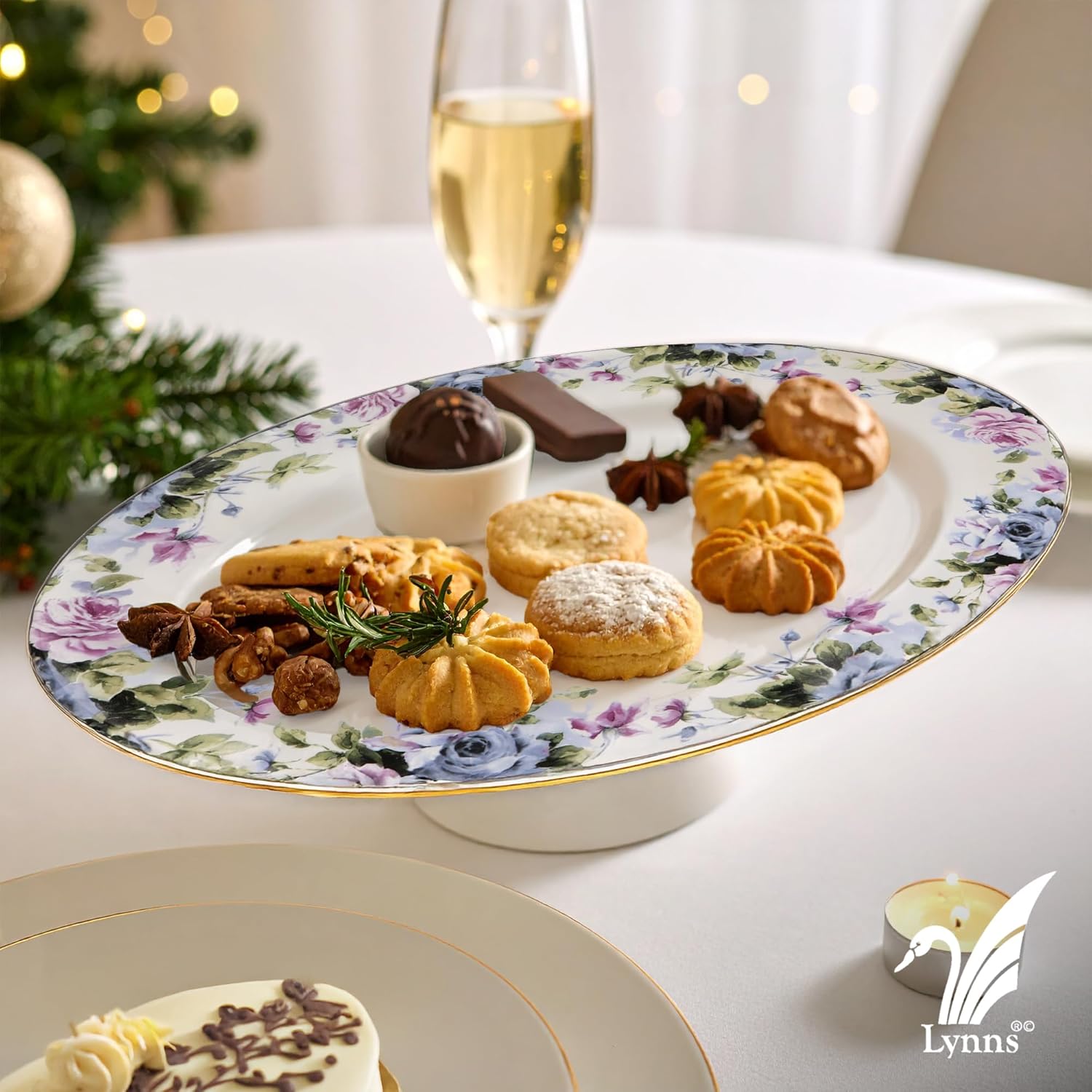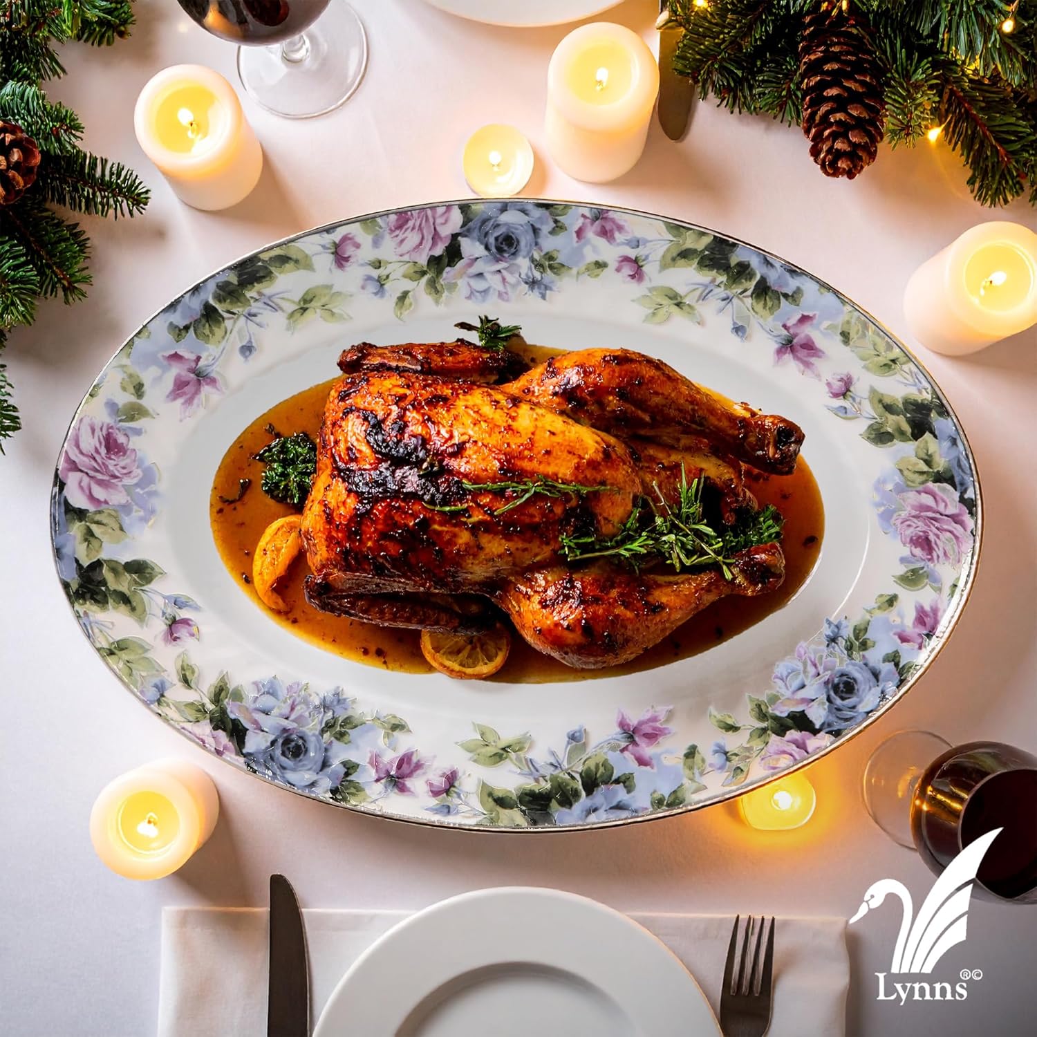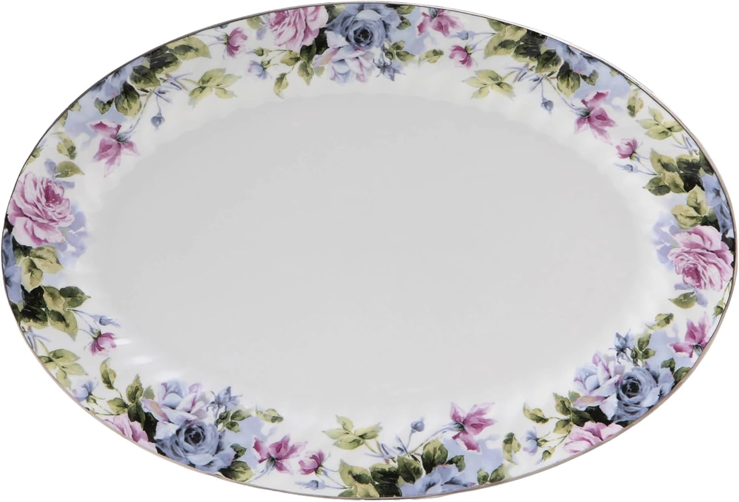 Lynns Paradise Millicent 14-Inch Oval Platter, Set of 2, Purple; Heavy Duty; Chip Resistant; Lead and Cadmium Free; Freezer to Oven Safe up to 500°F