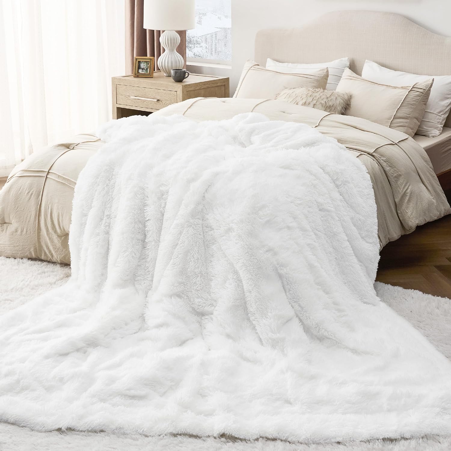 Bedsure GentleSoft Fluffy White Blankets Queen Size for Bed, Thick Sherpa Faux Fur Fleece Fuzzy Plush Winter Warm Heavy Soft Queen Blankets, Bedroom Decor White Gifts Cozy Gifts for Women Men, 90x90