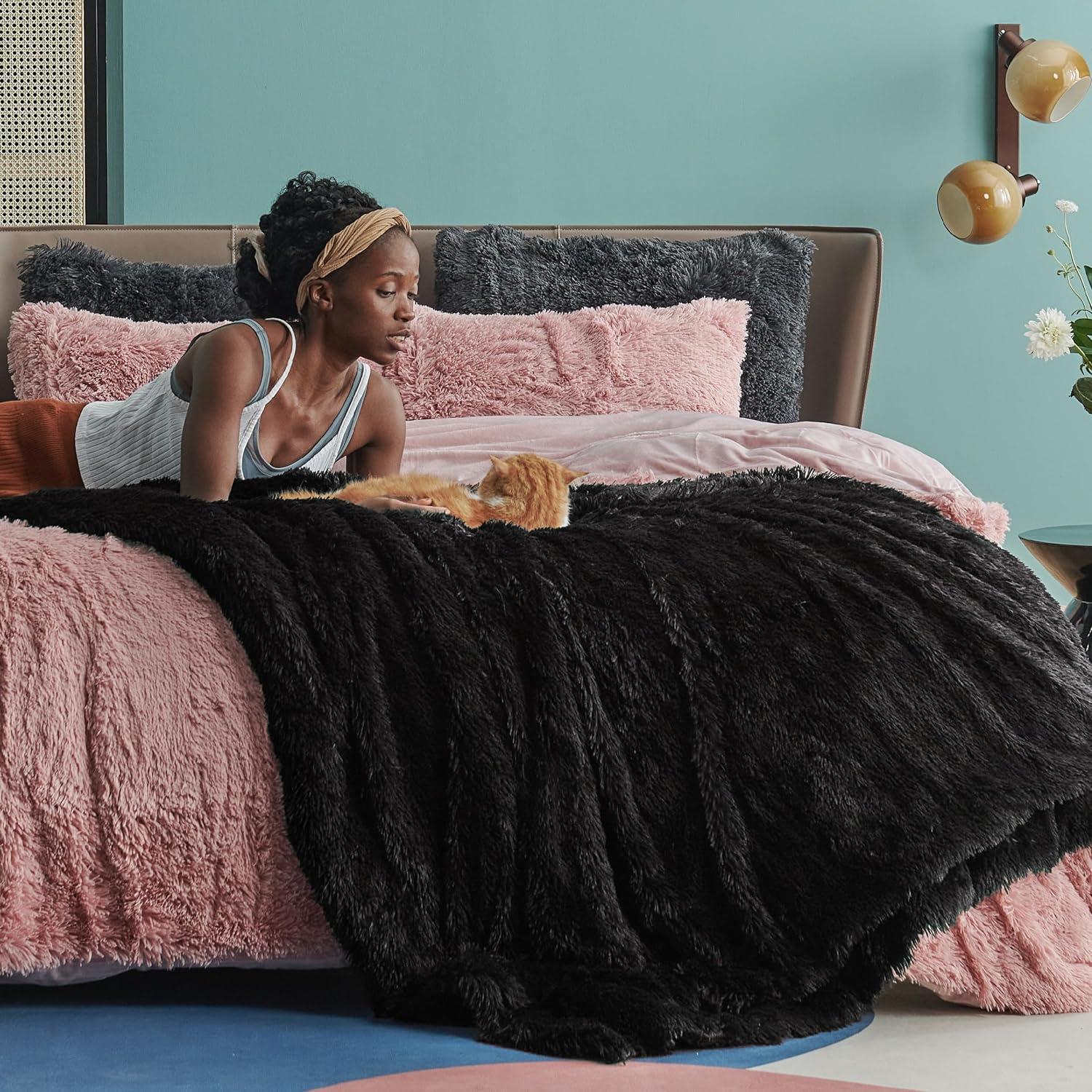 Bedsure GentleSoft Fluffy Black King Size Blanket for Bed, Thick Soft Sherpa Faux Fur Fleece Bedding Fuzzy Plush Winter Warm Heavy Oversize Large King Blanket, Cozy Black Gifts for Men Women, 108x90