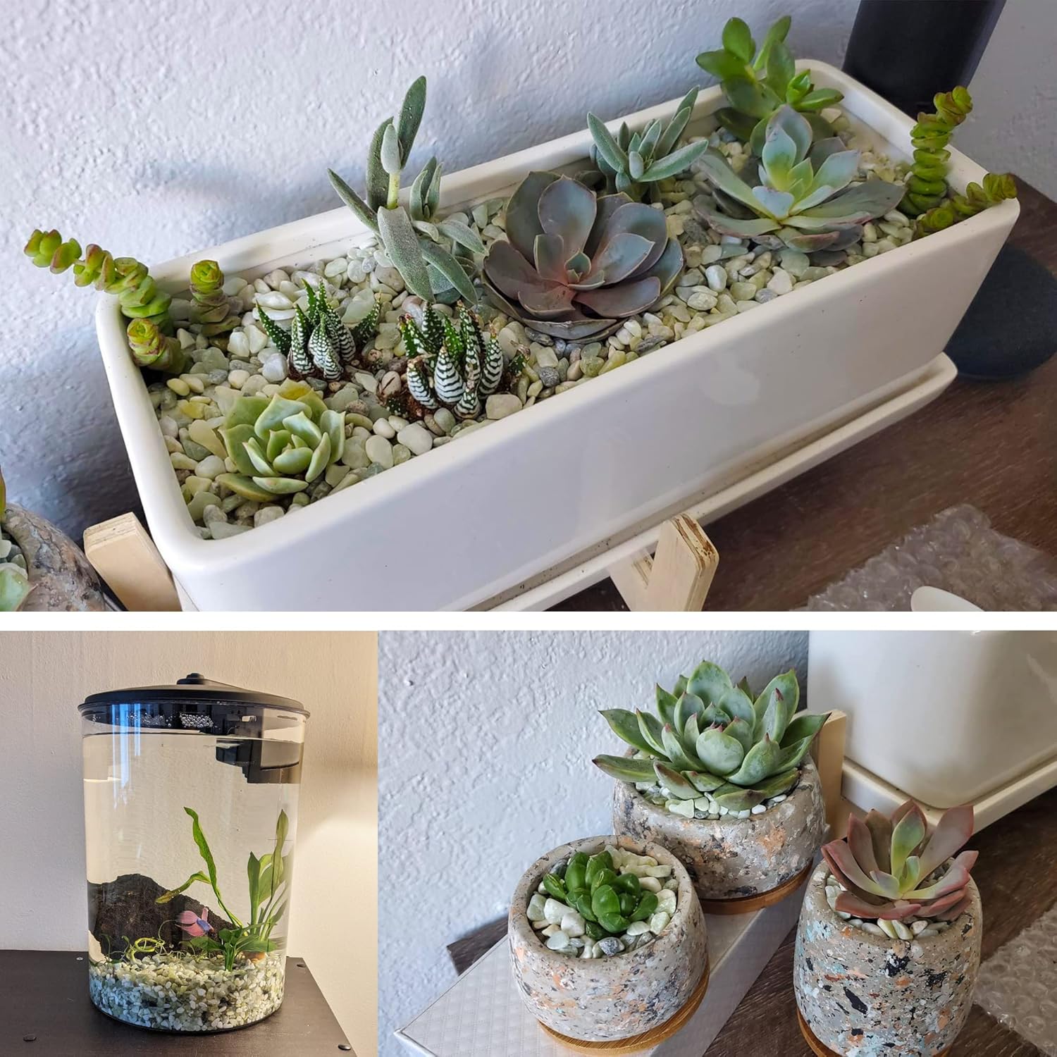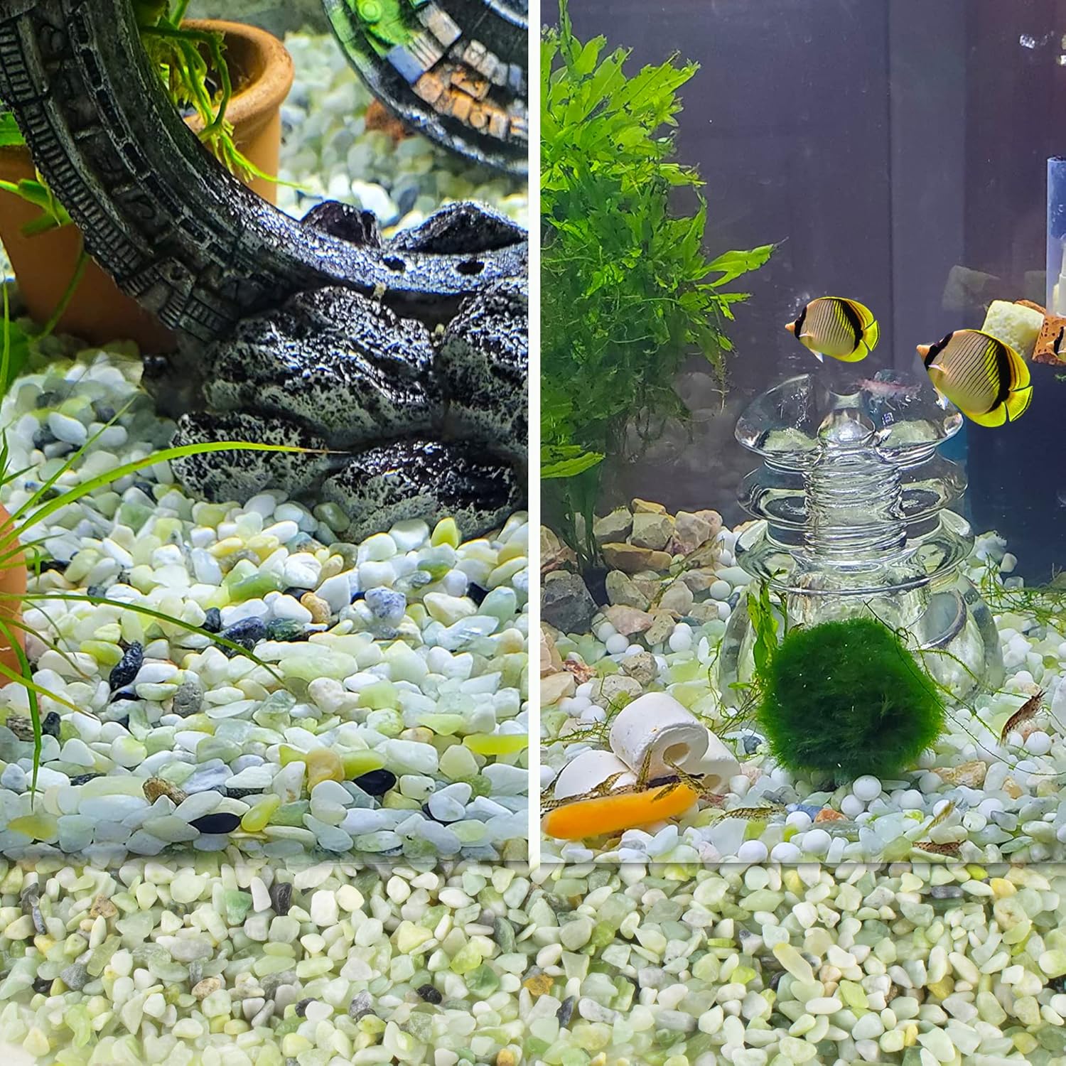 - đ ăAquarium decorationăIdeal for pimping out your fish tank, aquarium, tiny landscape eco vases, glass planters, glass containers, and whatnot. These gravels are the secret sauce for helping your water plants grow, and they'll give your fish that genuine underwater vibe.