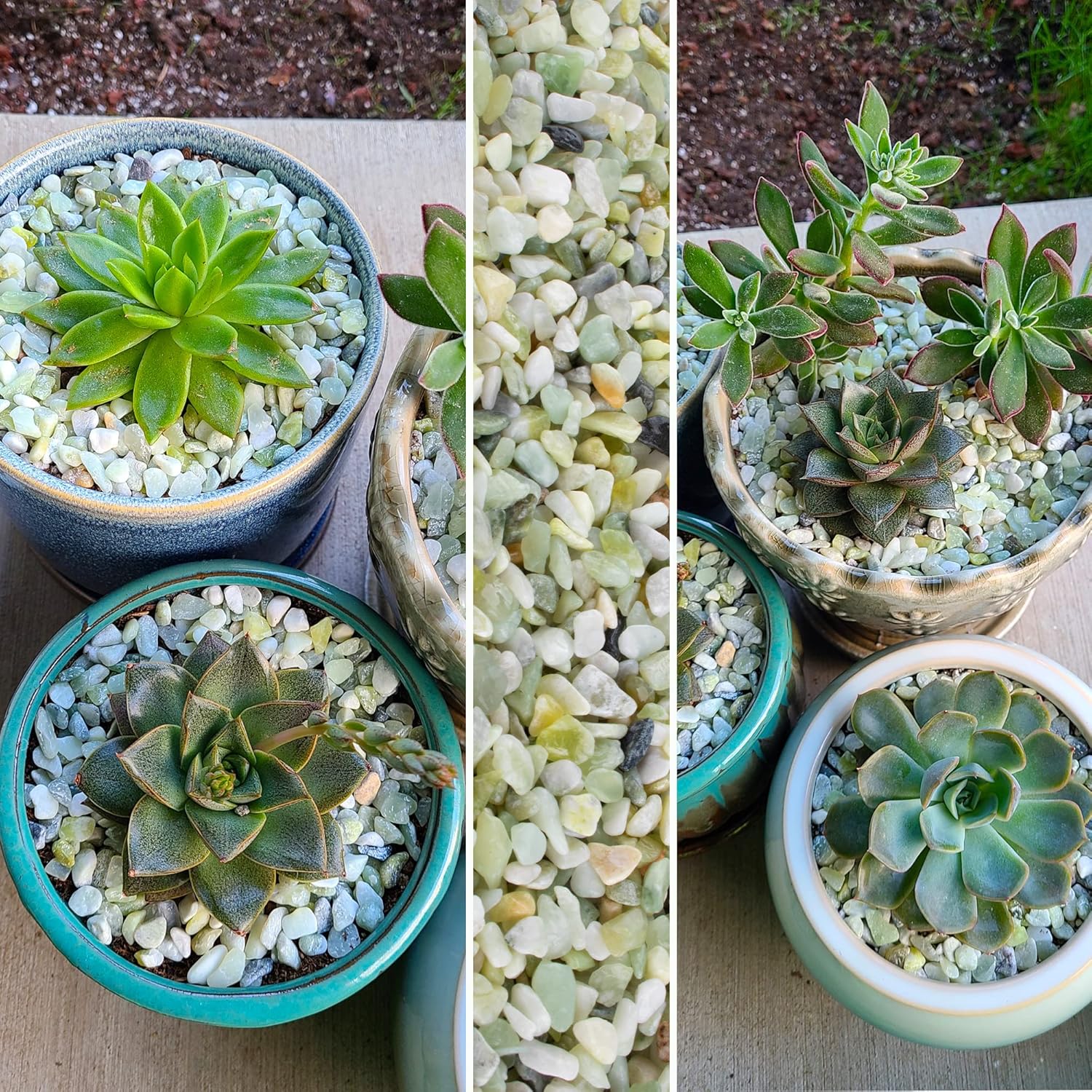 - đ”ăNATURAL STONESăThe combo of natural green and white rocks looks real classy and fresh. Their surface is all clear and smooth. These babies being all-natural, they're gonna stick around for a good while.