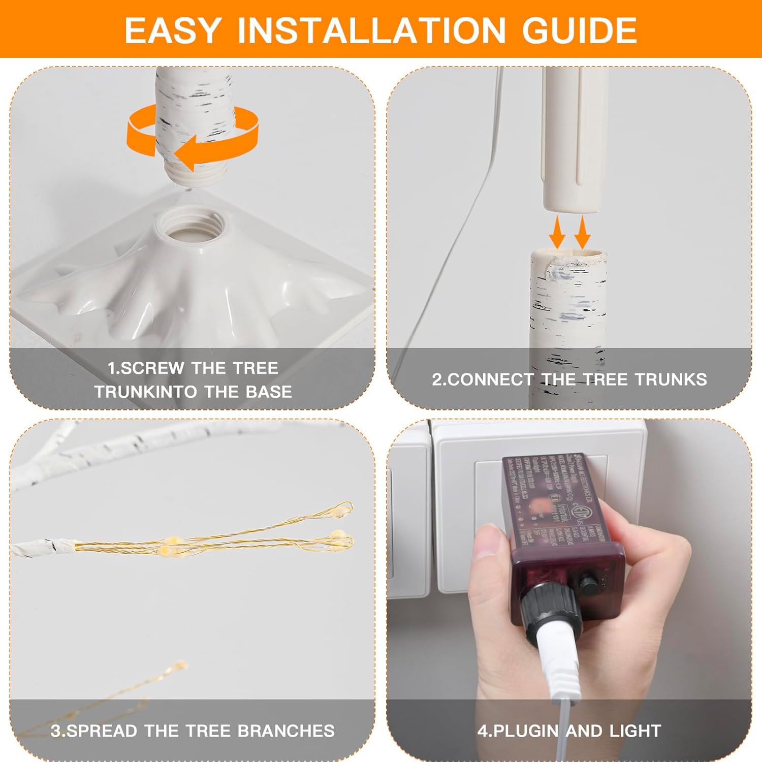- 【Remote Controlled Birch Tree Light】You can use the remote control to turn on/off, change 8 lighting mode, flashing speed and 4 brightness, timing mode, very safe and easy to operate. This birch tree light adapter also has a switch function and a timing function to achieve the same functions as a remote control.