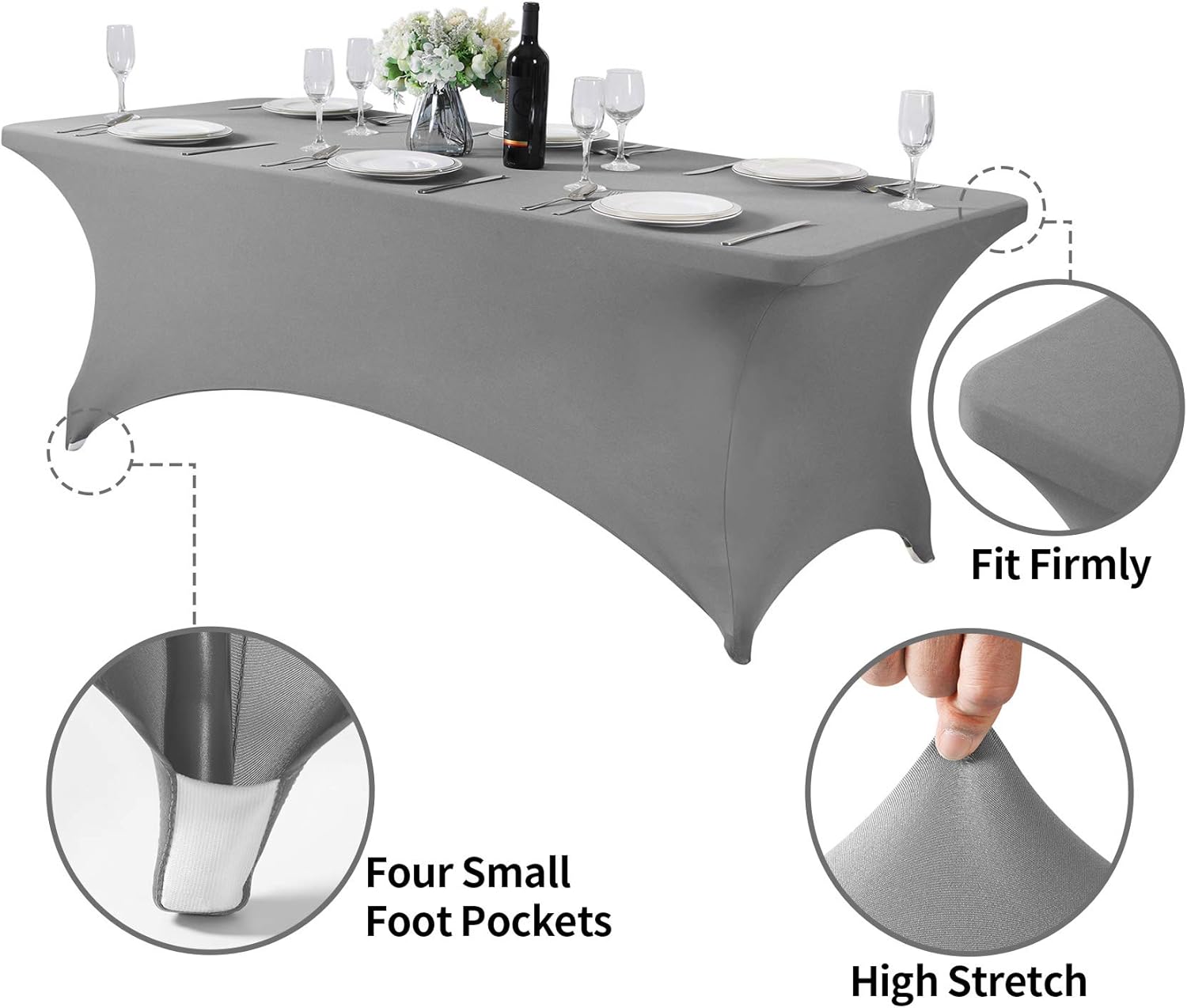 Spandex Table Cover for 8FT or 4ft or 6ft Table Universal Fitted Stretch Tablecloth for Party, Banquet, Wedding and Events-Gray